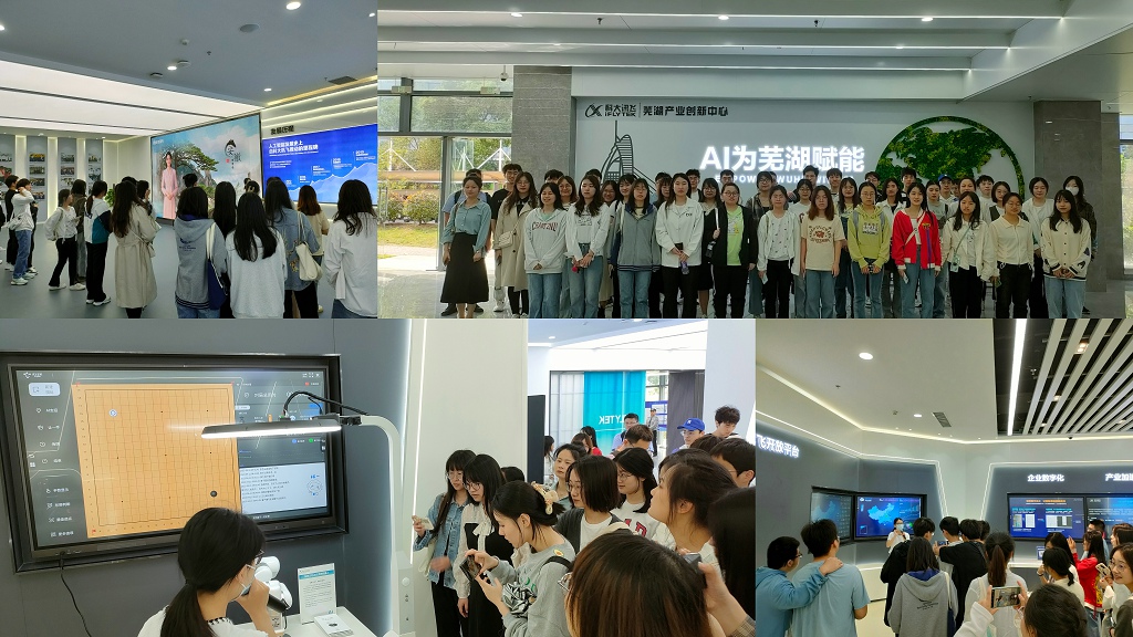 见习活动首先来到科大讯飞安徽芜湖人工智能体验中心,该中心致力于推广智能科技、人工智能教育、人才培养和科技创新,为公众提供人工智能体验、交流与学习的平台,推动科技创新和创新创业一体化发展。同学们通过参观,了解了虚拟主播、AI+教育、AI+汽车、语音识别、阿尔法蛋等人工智能技术的应用。同学们纷纷自己尝试使用相关技术,与玄机iflygo弈棋机器人对弈,与阿尔法蛋对话。