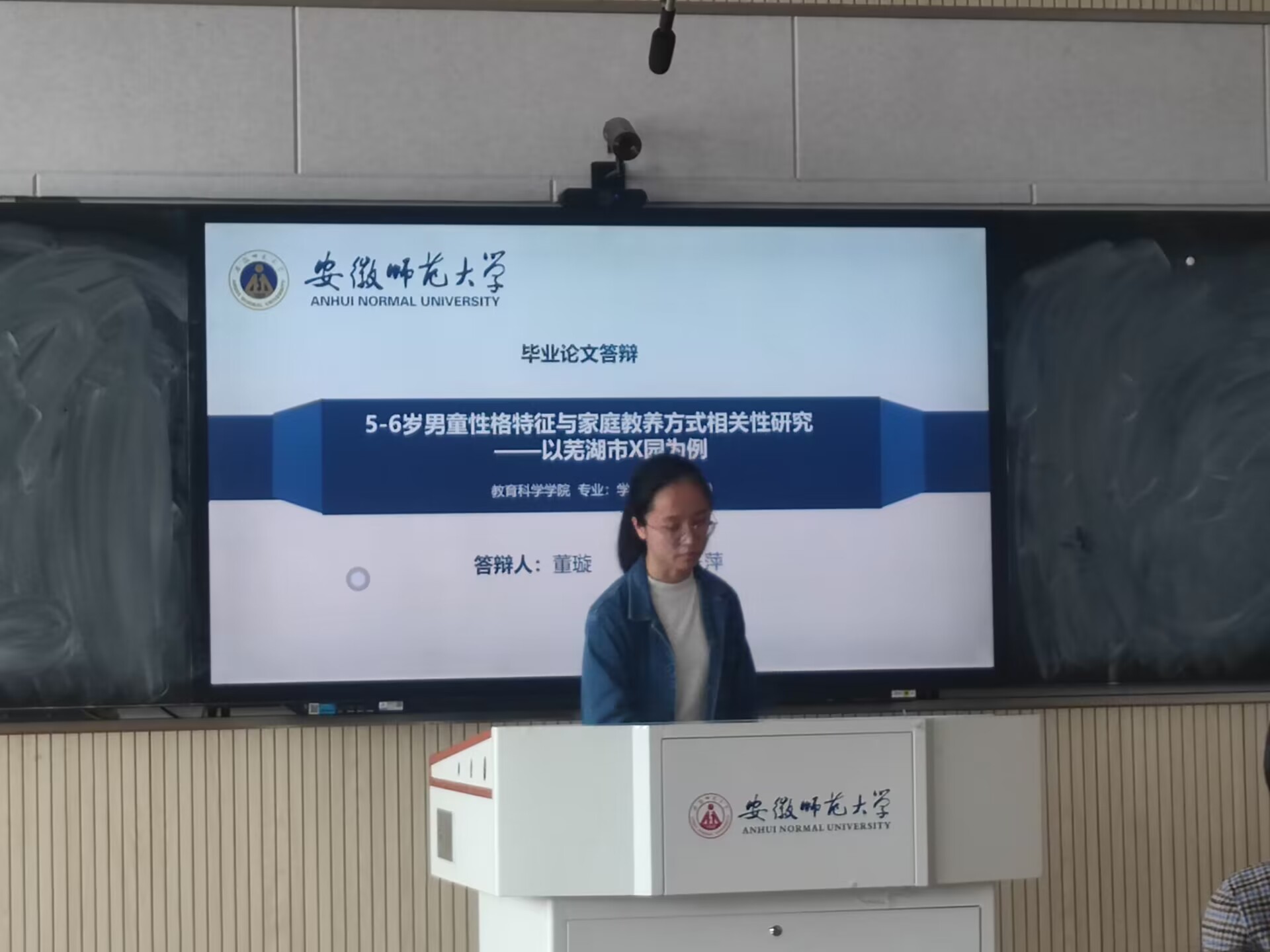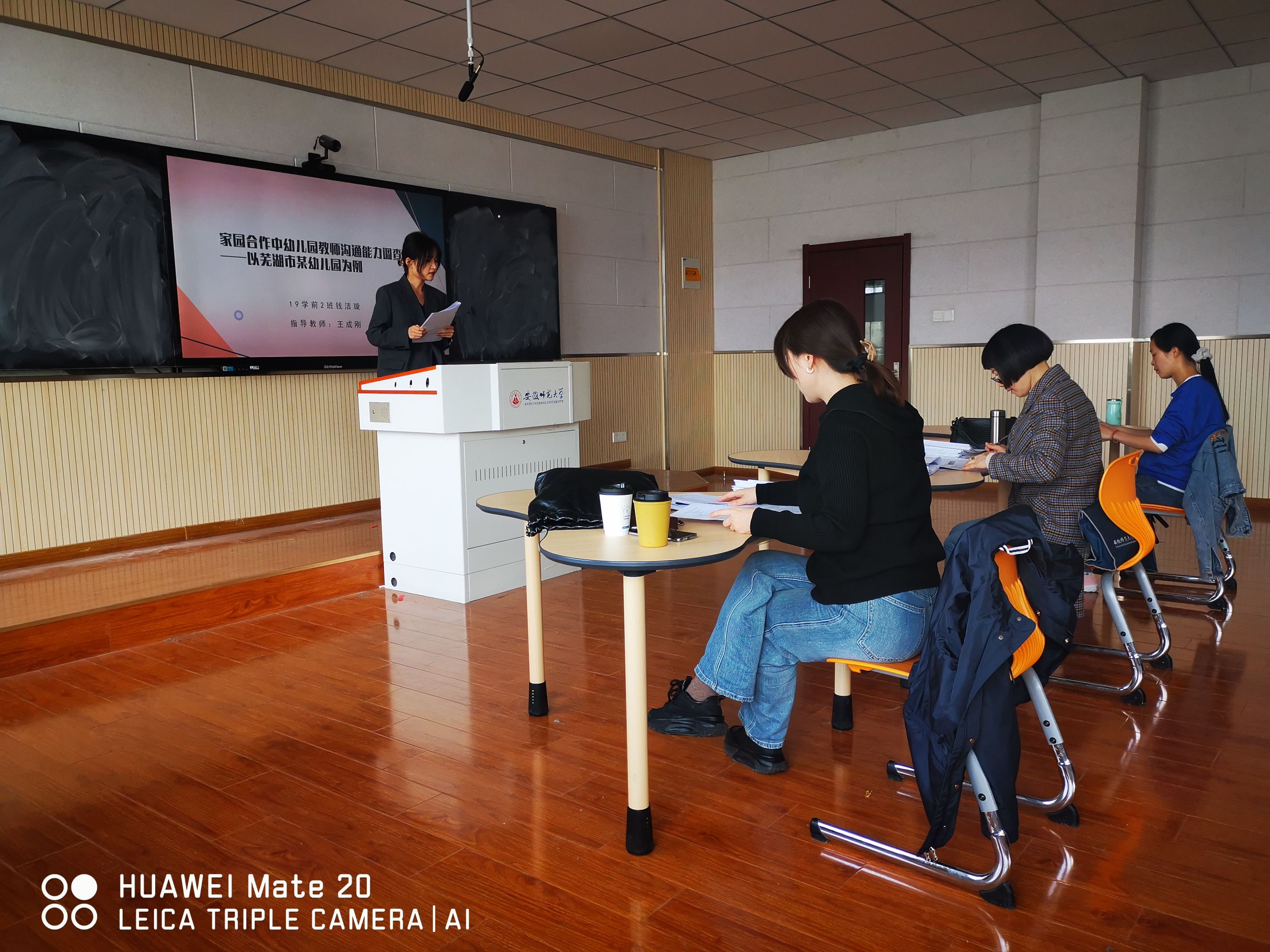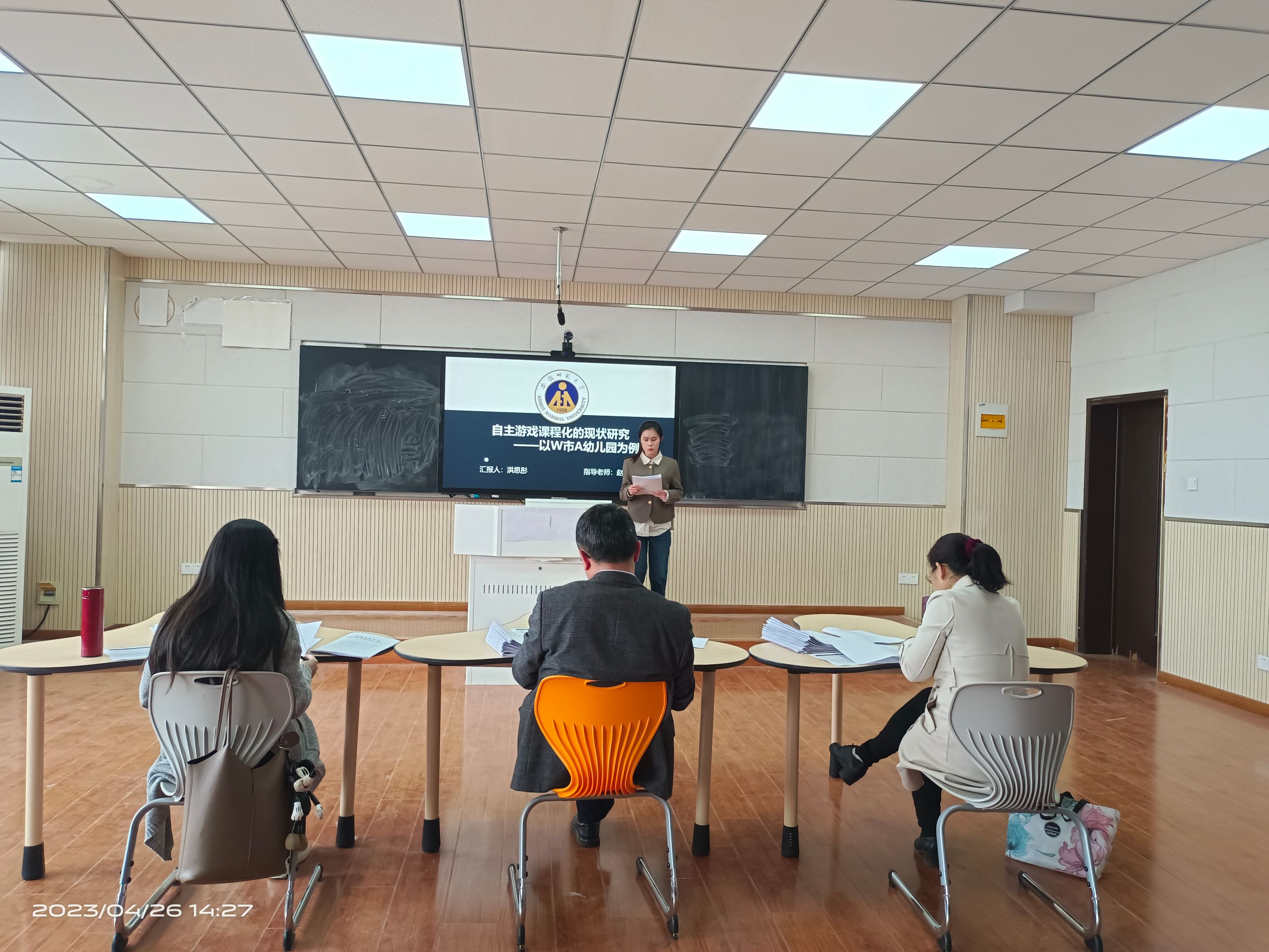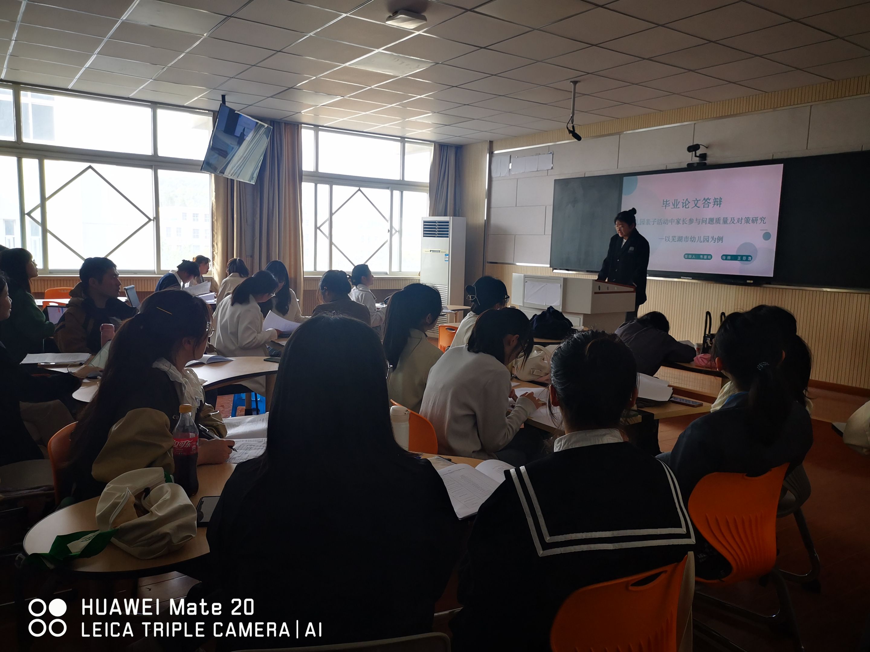 根据学校和学院毕业论文撰写安排的相关要求,学前教育专业本科生毕业论文工作撰写工作先后经历了论文选题、开题、调查、初稿、定稿、盲审、答辩等环节。在论文答辩环节,每组由三位老师做答辩评委,论文答辩遵循指导教师回避方式。答辩过程中,同学们先结合PPT阐述从选题缘由、研究意义、概念界定、研究方法和主要内容等方面做出阐述之后,参加答辩的教师针对同学们的论文提出相关问题,并由该同学现场做出简短的回答,以考察该同学对论文的熟悉程度和对专业知识的掌握程度。同学们针对教师提出的问题进行了相应的回答,尽管还存在一些不足,但是总体上都得到了老师们的肯定。各位答辩教师,并针对同学们的论文如何进一步修改提出了宝贵的建议,使大家更明确了需要改进的方面。