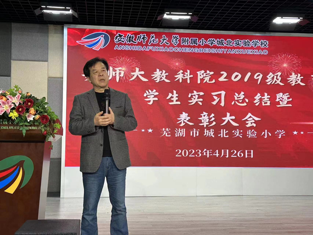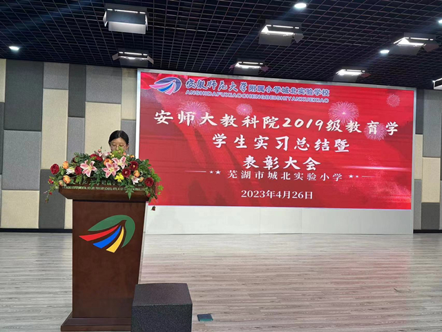 4月26日,365英国上市官网2019级教育学专业的12名本科生圆满完成了在师大附小城北实验学校为期10周的教育实习任务。当日下午,教育学专业负责人徐赟、指导教师姚运标和胡微、师大附小城北实验学校校长严慧、以及师大附小城北实验学校全体教师参加实习生实习总结大会。