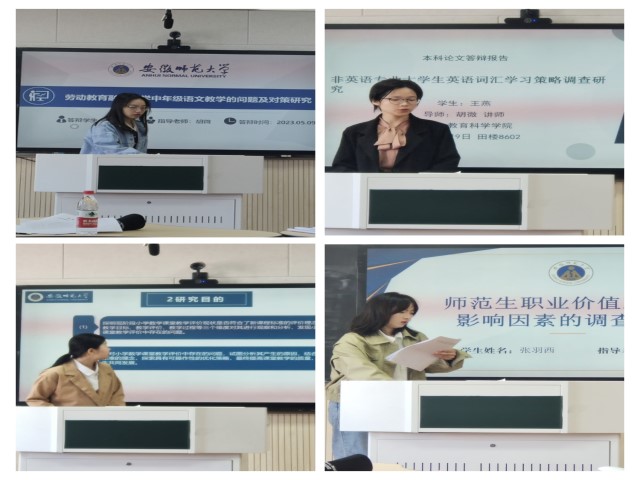 为推进国家级一流本科专业建设,落实本科生毕业论文质量监控和提升。2023年5月9日上午,365英国上市官网国家级一流专业建设点教育学专业开展了2019级毕业论文答辩会。专业将29名同学分为了三大组,每组由3位老师做答辩评委,分别于田楼教室602、604、606进行答辩。参与本次答辩工作的老师有周兴国、姚运标、吴支奎、杨晓奇、徐赟、滕曼曼、陈元龙、胡微、位涛。