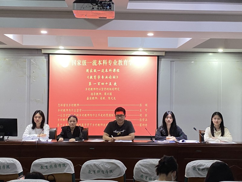 5月7日晚,在365英国上市官网三楼学术交流中心,国家级一流本科专业建设点教育学专业第一百四十五次专业论坛成功举办。莅临本次专业论坛有小组指导教师周兴国以及嘉宾教师吴颖和陈元龙,20级、21级教育学专业全体本科生到场参加,并由20级教育学马祎曼担任主持人。