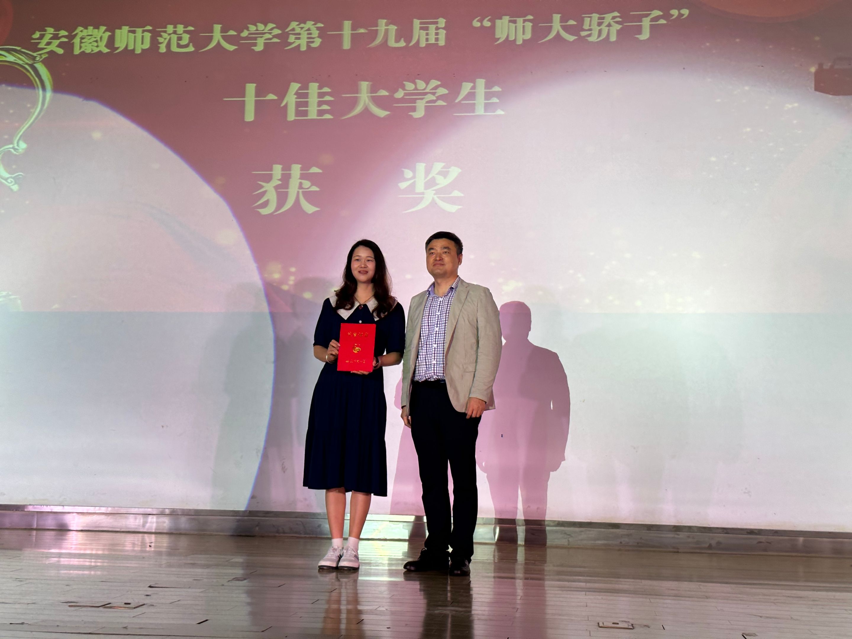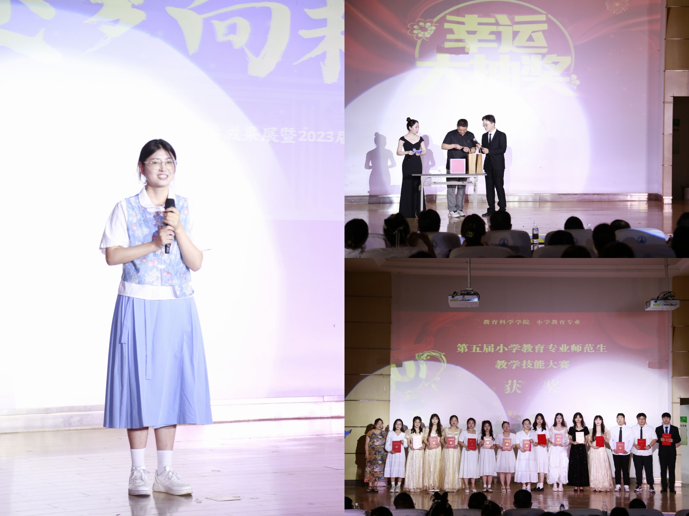 在颁奖环节,主持人宣布本年度小教专业获奖情况,学院领导、老师为获奖学生颁奖并合影留念。奖项涉及读书笔记、书法比赛、教学技能大赛以及优秀毕业生,彰显了小教学子优秀的综合素养。颁奖结束后,歌曲《如愿》呈现了中国人的奋斗与传承,歌曲《情歌》娓娓唱着时光的流转,一首《凤凰花开的路口》诉说着青春与离别。之后,现场大屏幕播放了献给毕业生的自制短片。一幕幕场景,一句句祝福,一段段真情,唤起了同学们的美好回忆,赢得了观众们的热烈掌声。短片结束,19级小教专业班长江宇璇同学代表毕业生发言。