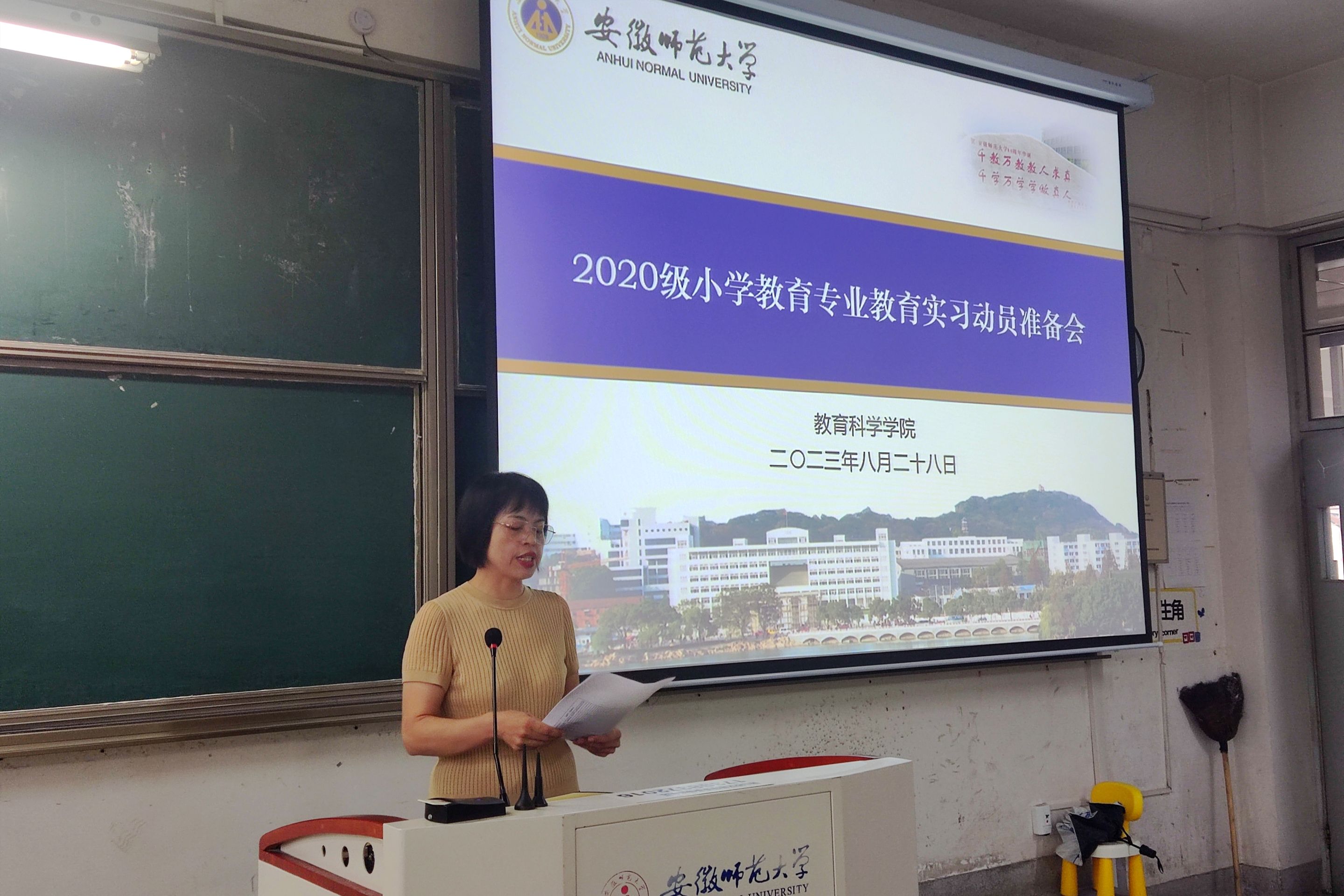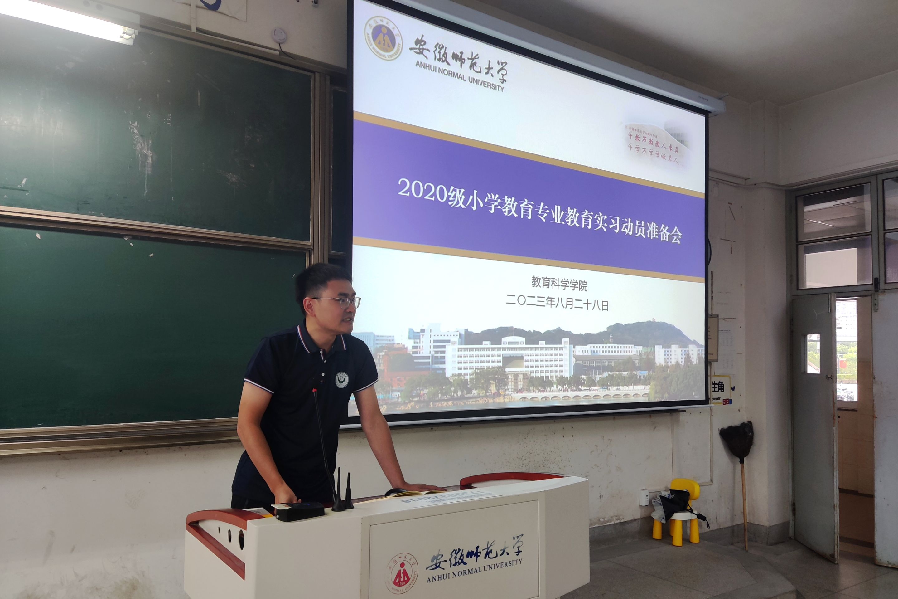 为保证教育实习工作顺利开展,8月28日下午3时,2020级小学教育专业在田楼8101教室召开教育实习动员准备会,学院教学副院长韩建涛、专业负责人王芳、实习指导老师、班主任老师、辅导员莫大贡以及2020级小学教育全体同学参加了本次会议,会议由莫大贡老师主持。