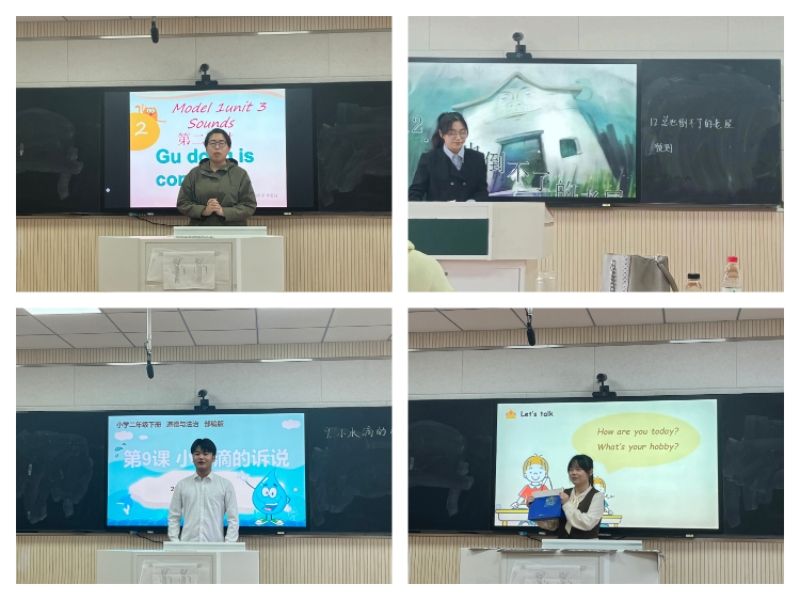 参赛选手赛前准备充分,根据自身情况选择了不同主题,涉及学科范围广泛,授课方式多样。如左方倩在讲授《总也倒不了的老屋》时,灵活运用卡通图案,并对生字词进行板书。张苏佳授课《角的初步认识》时语言风趣幽默,通过实物展示带领大家认识角。陈玉洁的全英文教学流畅且富有感情,并借助教具向评委老师呈现一堂生动趣味的英语课。在《小水滴的诉说》一课中,孙宇独具特色的语言表达,营造出活跃的课堂氛围。尹项哲以《课余生活我选择》为课题,从学生日常生活入手,引导学生科学安排课余生活。整场比赛过程中,选手们的教学思路清晰,教学内容丰富多彩,教学技能扎实牢固,板书美观合理,课堂各具特色,赢得了评委老师和在场同学们的一致喝彩。