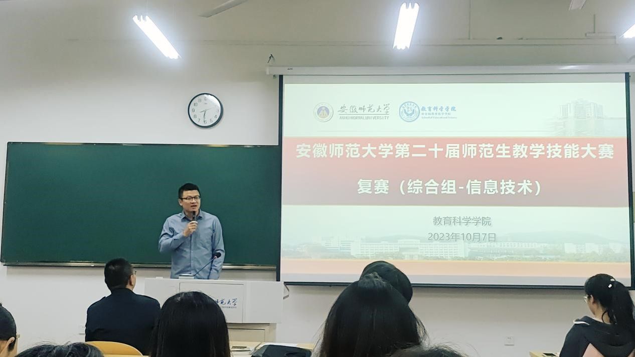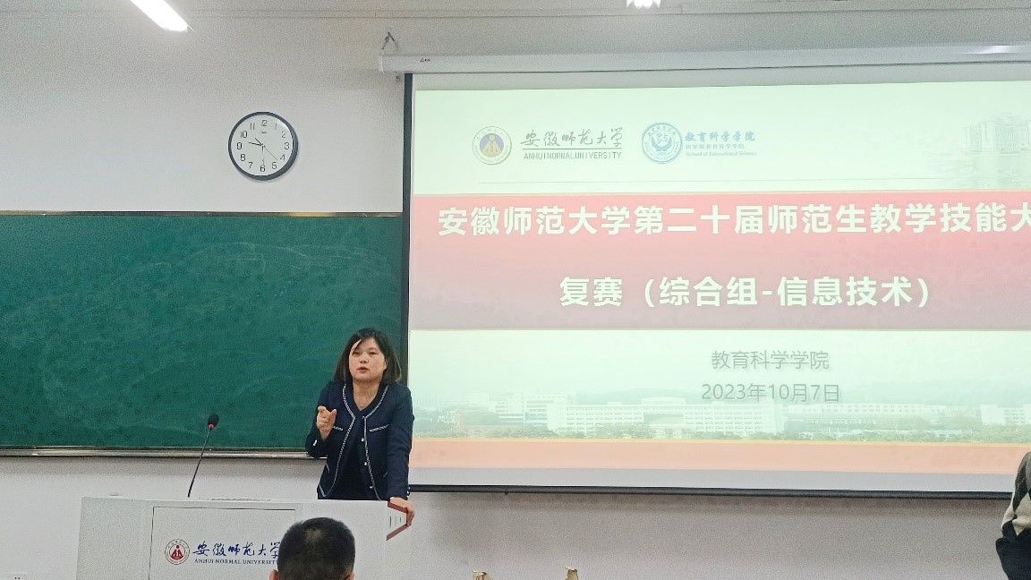 为进一步夯实师范生教学技能,提高师范生教育教学能力,10月7日晚,教育技术学专业在教学楼1507教室顺利开展安徽师范大学第20届师范生教学技能竞赛复赛(综合组-信息技术)。本组比赛由365英国上市官网承办,21级全体本科生参加了初赛,21与22级教育技术学全体本科生现场观摩了复赛。比赛特邀芜湖市教科所信息科技学科教研员葛萱、安徽师范大学附属中学顾学雷老师、利民路小学信息办主任李长生主任作为大赛评委。