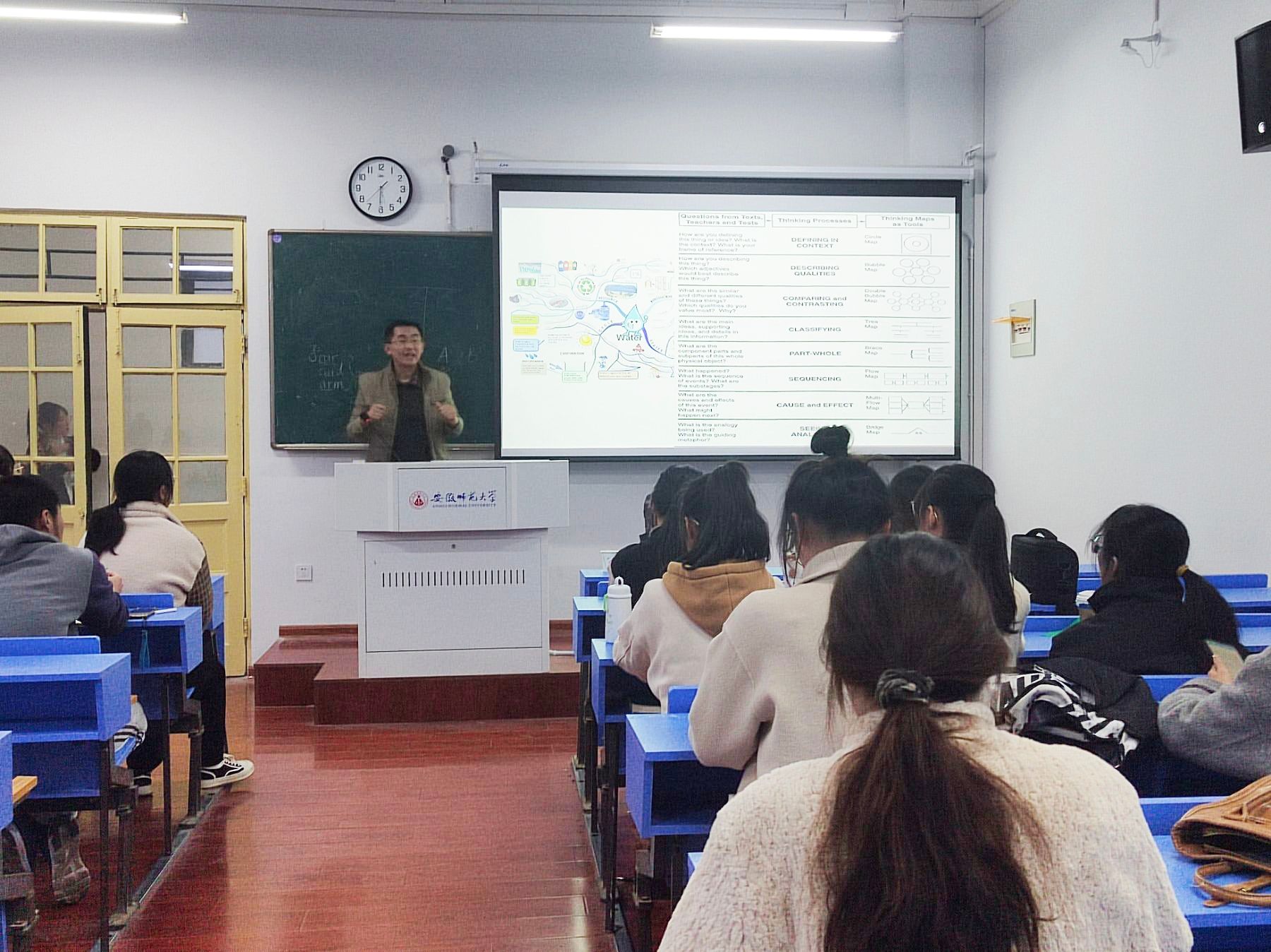 英语学科指导教师方克宇首先以打招呼和小短文的形式导入对教资面试的介绍,并亲自示范如何在课堂上拉近与学生之间的关系。之后,他从结构化问题的内容、试讲题目的分析及答辩技巧三方面展开分享,并鼓励同学们在英语教学中融合“听说读写看”。同时,方克宇向同学们推荐了结构化和可视化教学图,并提醒大家重点关注面试的注意事项。在无生授课的模拟环节,陈玉洁、陶佳和陈伊婷三位同学分别进行了试讲。方克宇进行点评并提出三点建议:首先,小学应多用why和how对学生进行启发;其次,词汇课可以尝试自己画简笔画;最后,单词的讲述应根据音节,利用词卡辅助教学,“以旧带新”学习新单词。