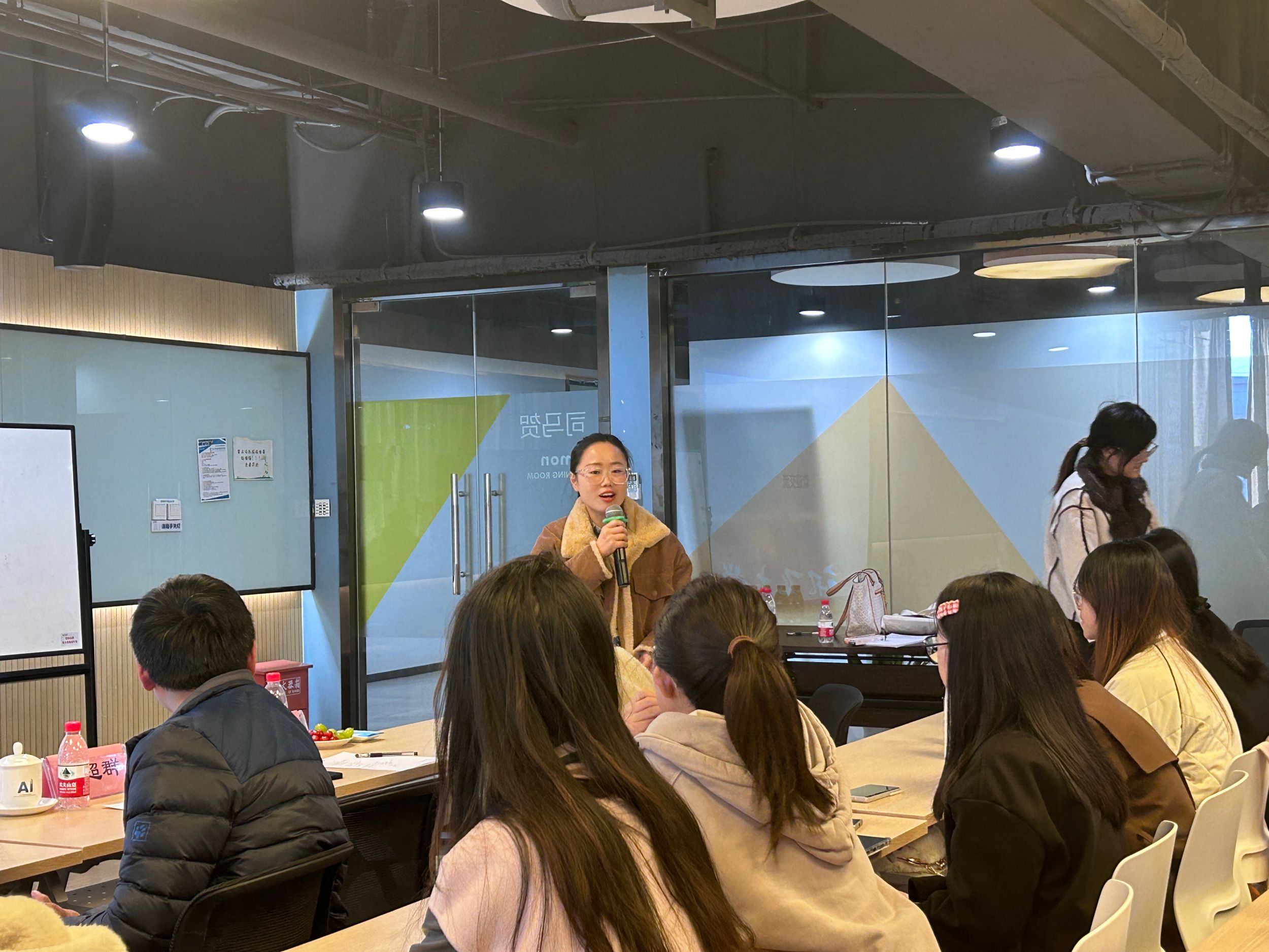 参观结束后,全体师生与科大讯飞AI研究院脑科学研究主管黄倩、科大讯飞智慧心育产品经理姜金奇等人齐聚报告厅参加座谈会。座谈会上,科大讯飞智慧心育产品经理李超群为大家带来主题为智慧心育综合解决方案的报告。李超群从方案背景、方案内容、专业保障、总体成效等方面介绍了科大讯飞的新产品——AI心理伙伴“心语”,这是在星火大模型基础上,基于高质量的心理专业数据+心理专业领域知识的双轮驱动构建心理大模型,具有良好的发展前景。黄倩也在座谈会上表示,很欢迎各位心理学专业的学生能来到科大讯飞参观交流,并且热切希望大家在未来能够在心理学这个方向上越走越远,为AI心理这个领域贡献更大的力量。