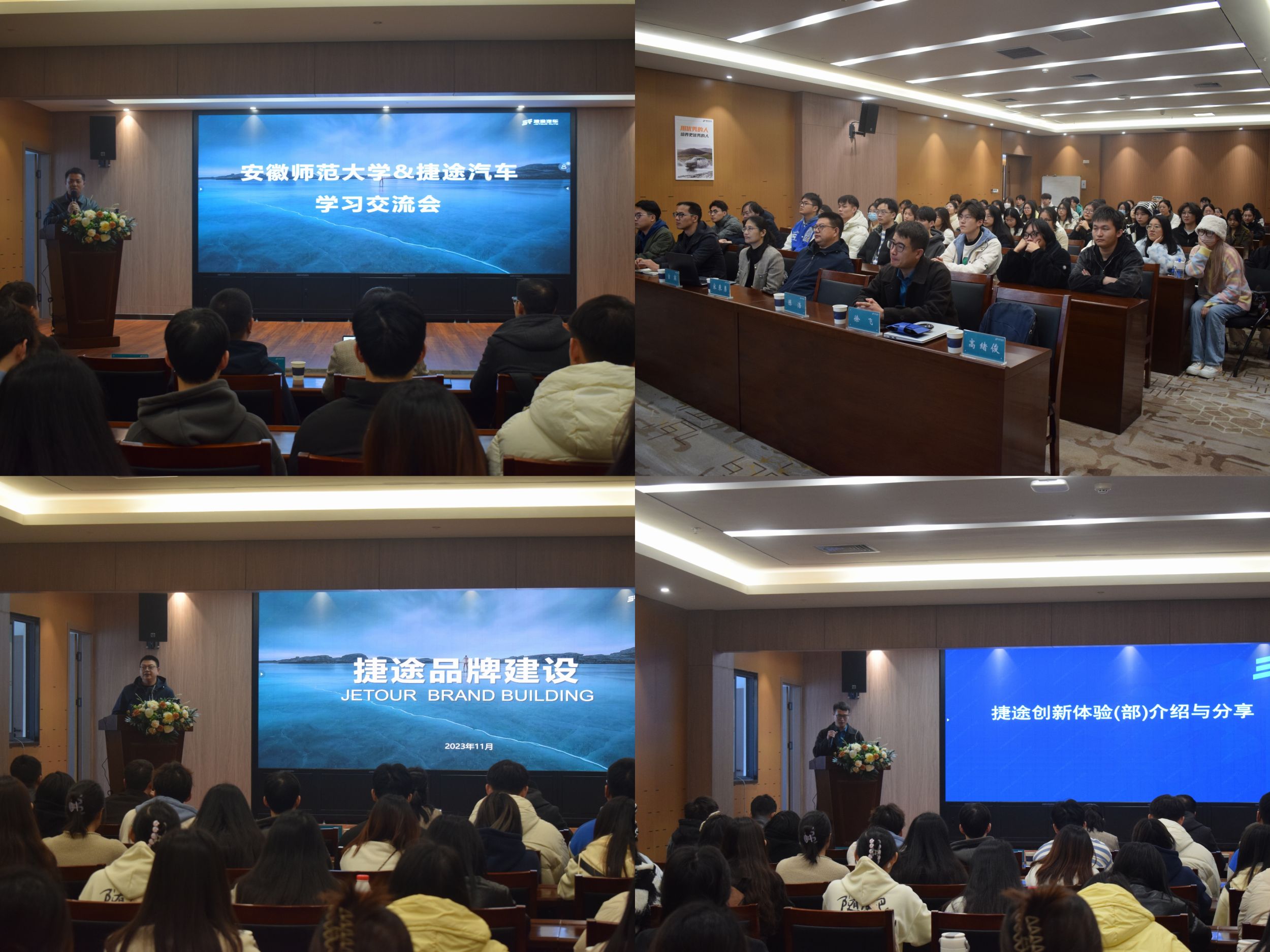 交流会上,奇瑞公司人力资源部高绪俊介绍了奇瑞集团的业务架构,并针对旗下四大品牌,特别是捷途汽车品牌的发展历程及近年来的高速发展趋势进行了详细介绍。捷途汽车营销公司总经理助理宋来勇详细介绍了捷途品牌的建设理念,并围绕“旅行+”这一核心概念展示了捷途品牌的战略定位,认为品牌是由用户定义,品牌建设即为培育用户的定义方向。捷途研发创新体验部徐飞结合自身心理学专业背景,从学习型、专业型、团结型、创新型和无限可能型五个角度介绍心理学在企业研发创新方面的应用,展示了捷途研发创新体验部的工作环境、工作氛围和工作文化。