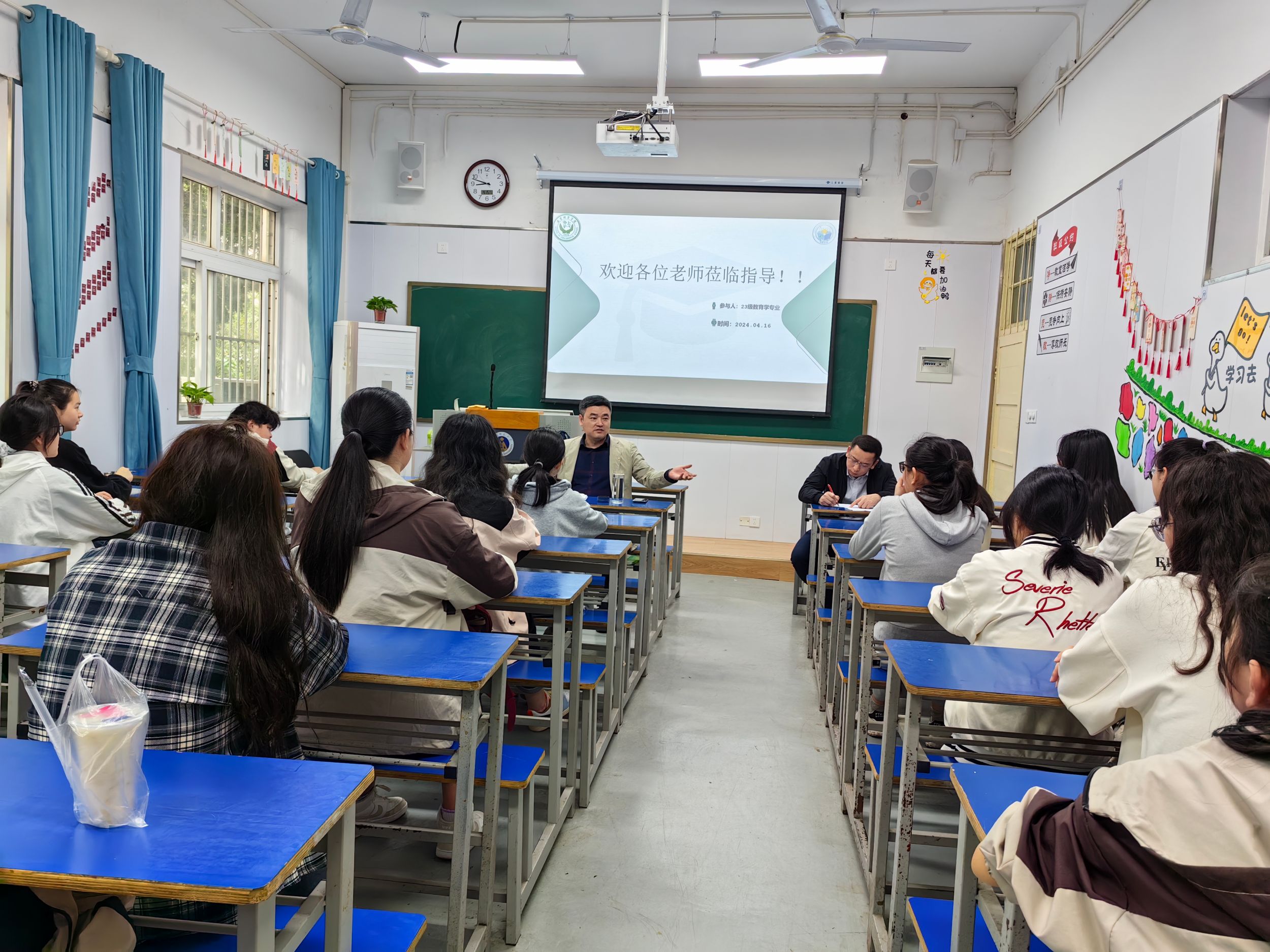 为助力学生深入了解专业发展,提升学生专业规划意识,4月15日上午,2023级教育学专业在天门山校区北教学楼107教室开展“师生共话谈未来”交流活动,院长李宜江、专业负责人徐赟特邀出席,活动由班长程硕主持,辅导员金凤仙及全体同学参与。