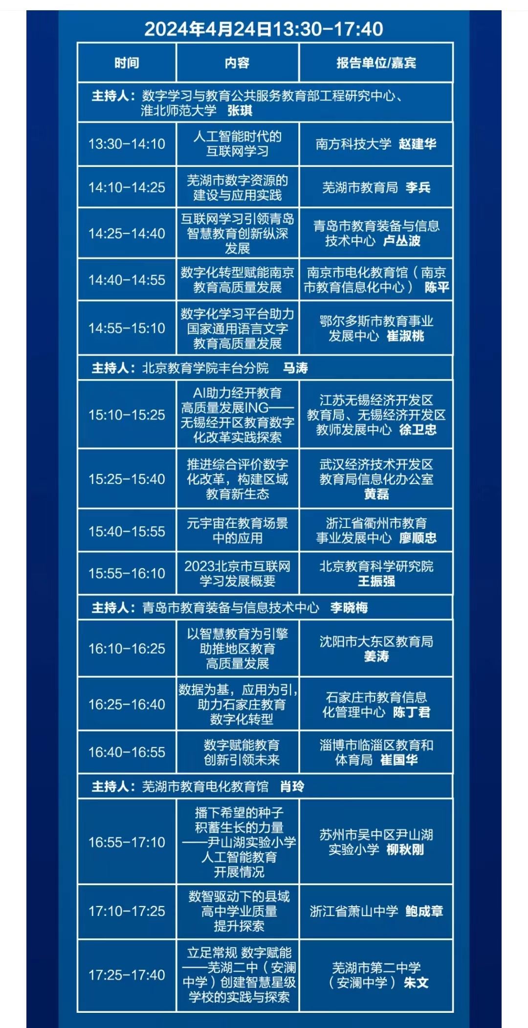 在数字化浪潮持续推动教育变革的当下,互联网学习以其开放性、灵活性和个性化的特点,正在改变传统的教与学方式。为了解互联网学习发展、智慧学校建设和人工智能教育最新情况,4月25日,2021级教育技术学专业全体学生在肖文老师和叶方舟老师的带领下,齐聚芜湖市第二中学西洋湖校区,参加了备受瞩目的《2023年中国互联网学习发展报告》发布会暨《2024年中国互联网学习发展报告》启动会。