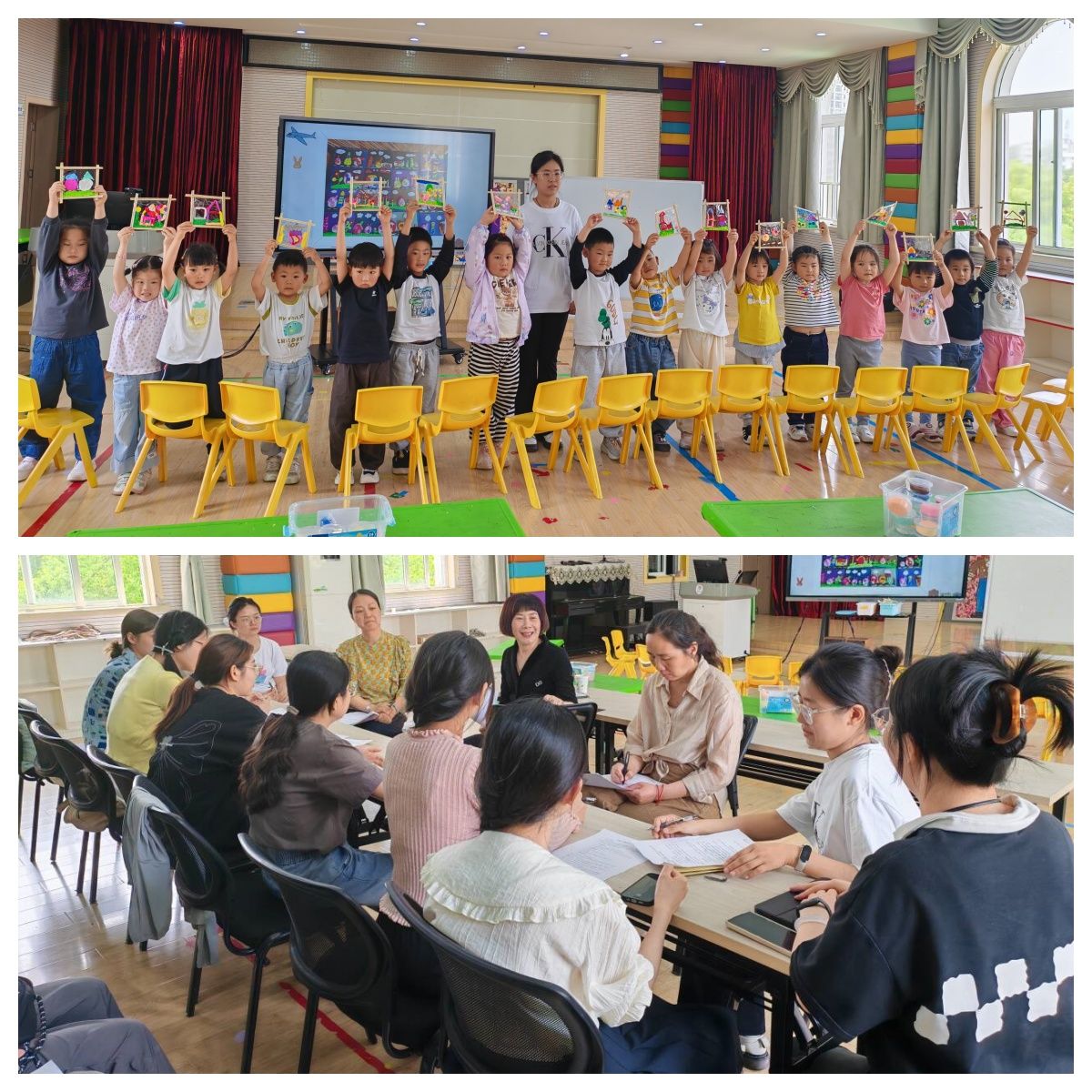 为检测实习质量,进一步提高实习生的实际教学水平,5月15日上午,赵学菊小组与朱言同小组的两组实习生于镜湖幼儿园和镜熙幼儿园开展公开课展示活动,赵学菊老师,镜湖幼儿园杨斌园长,指导老师杨世娇、朱诗雯等及两组实习生对公开课进行观摩。