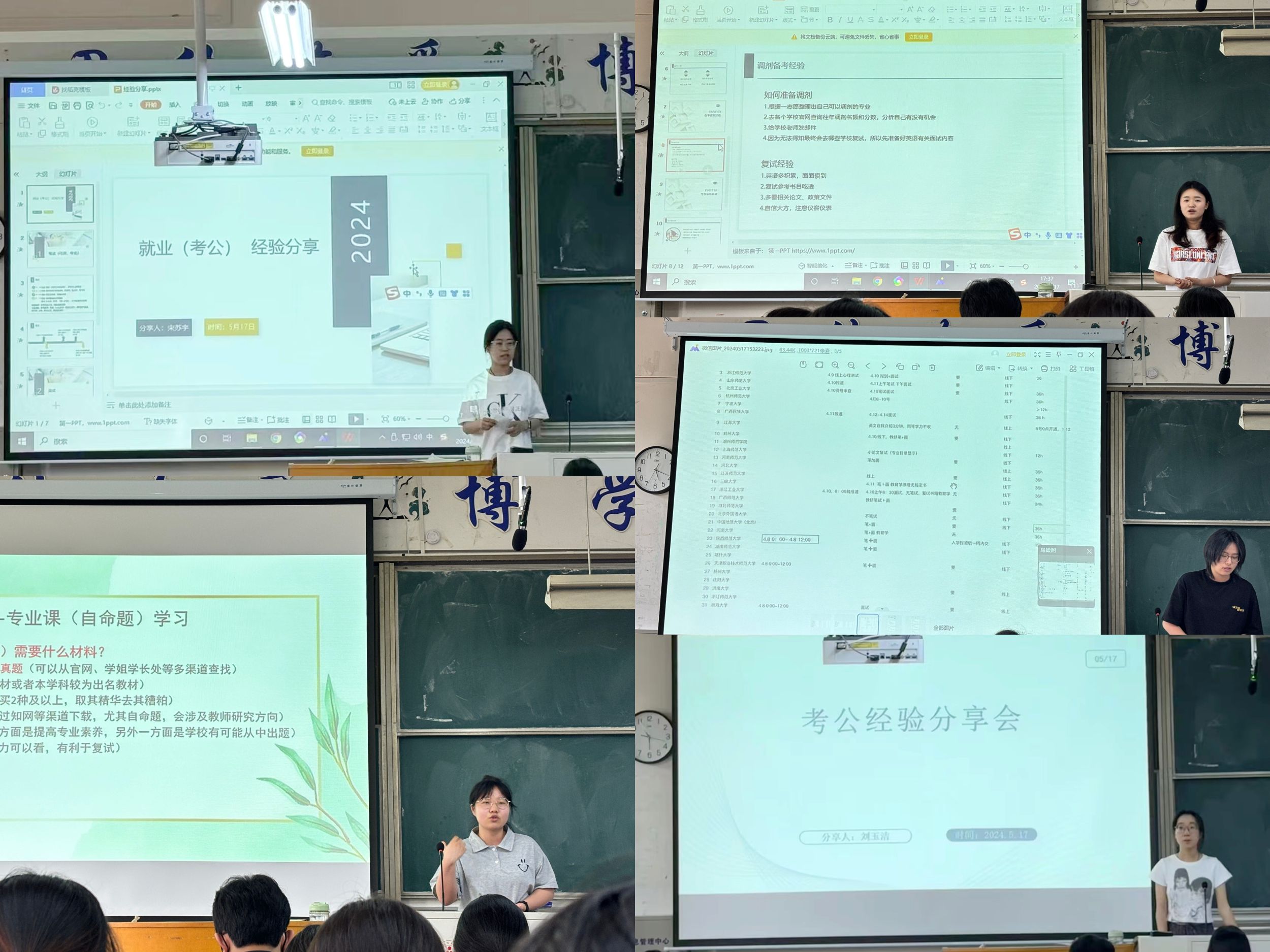 为解答2025届同学对于考研及就业相关问题的疑惑,5月17日下午,2021级学前教育专业在田楼8302教室召开考研就业经验交流分享会。本次会议由辅导员赵茜主持,特邀2020级学前教育专业考研就业(含推免)上岸的十四位学长学姐进行经验分享,2021级学前教育专业全体本科生到场参加。