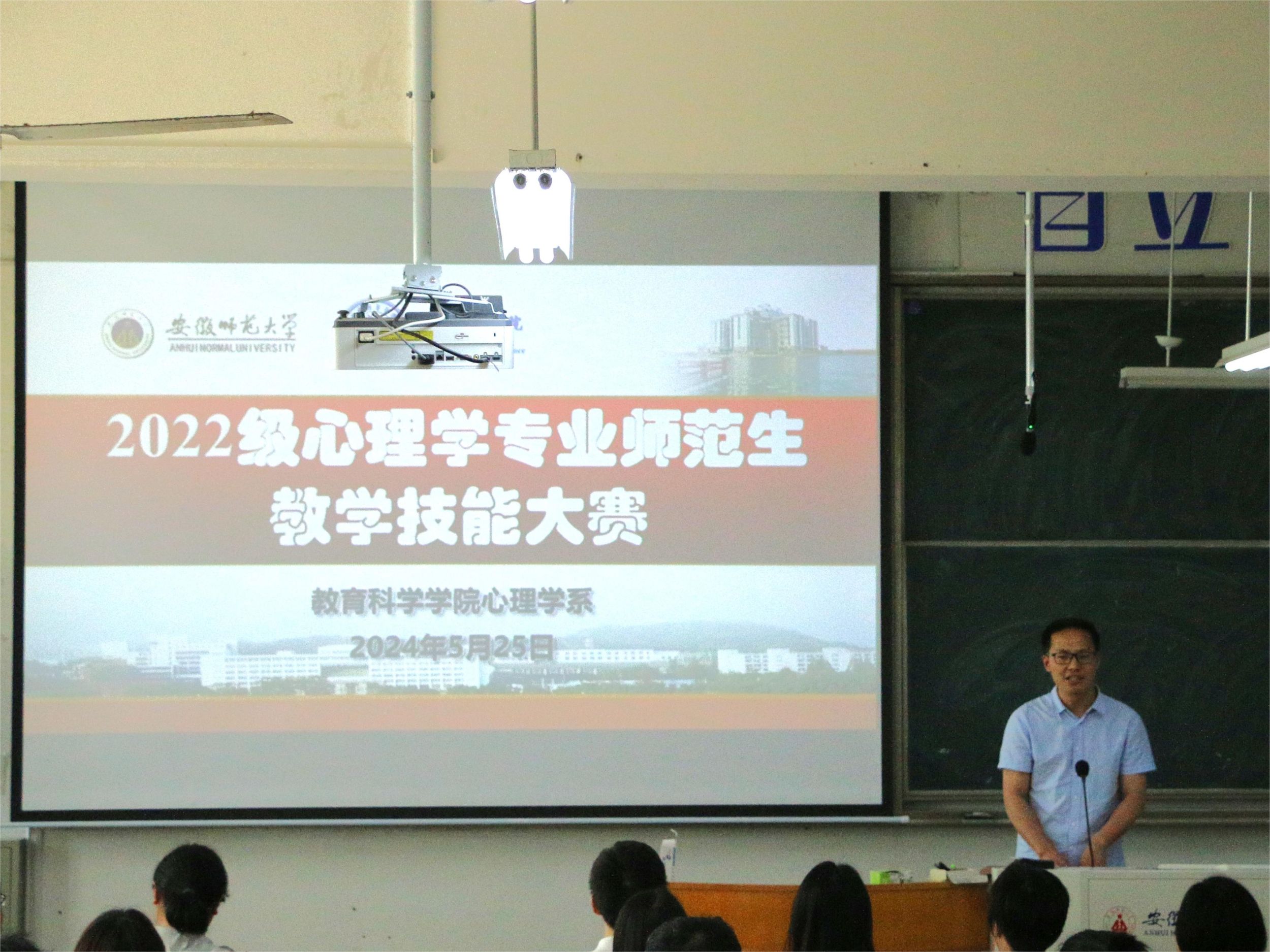 为进一步增强心理学专业师范生实践应用和创新能力,提高教学技能与教学水平,5月25日下午,365英国上市官网心理学专业在田楼8210教室举行2022级心理学专业师范生教学技能大赛。大赛邀请了谢莉、邹睿、王影、马洋、薛倩、郭传丽、赵雅卉等芜湖市中小学一线老师以及心理学专业部分教师作为评委专家,由专业负责人王礼军老师主持,2022级心理学专业本科生全员参与。