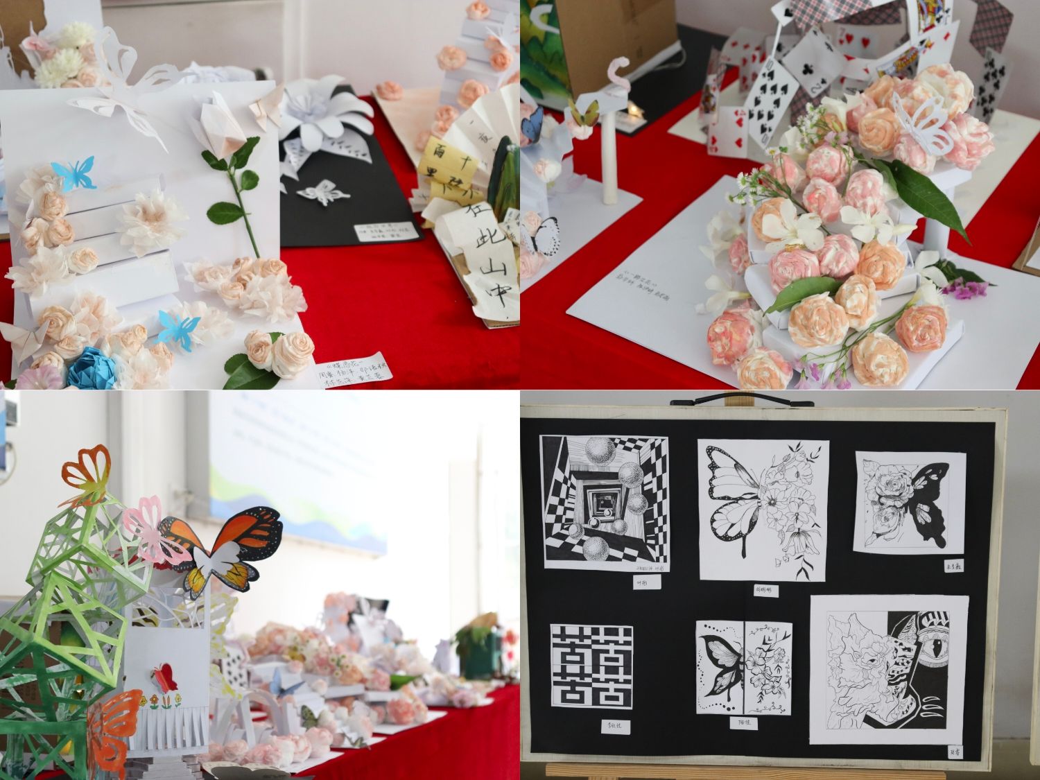现场展示的美术作品包括素描画、马克笔绘画、立体构成作品等,形式丰富多样。素描画明暗交接处过渡自然;马克笔画的色彩搭配使画面生动形象,富有活力;立体构成作品更是融入中国传统文化等因素,形态各异。黑白与色彩相互辉映,平面与立体交错结合。六十四幅作品各具特色,同样的内容也呈现出了多样的绘画风格。