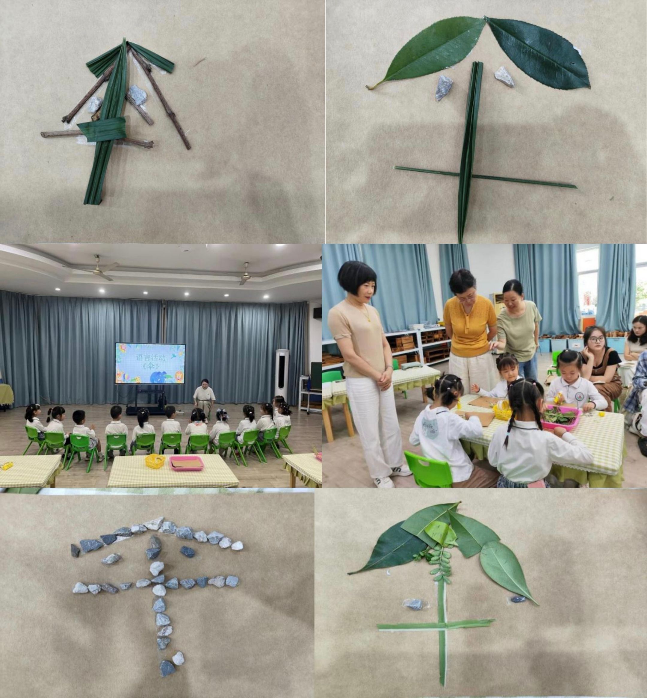 紧接着,伍雅玲老师带来了大班语言活动《伞》,幼儿在儿歌创编环节根据自己的生活经验儿歌句式特点,仿编出与各种有趣的伞相关的句式,同时认识了伞的基本构造:伞布、伞架、伞把。最后,幼儿动手操作自然材料,设计出自己心目中的“伞”。用身体动作和实物操作进行有趣的“前识字”活动。