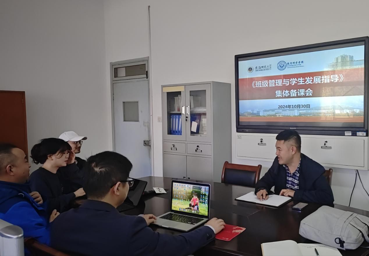 为确保《班级管理与学生发展指导》课程的顺利开展,提升教学的实效性与规范性,从而进一步提高教师教育课程的教学质量,10月30日,下午在学院208会议室举行了《班级管理与学生发展指导》课程集体备课会。本学期授课教师参加本次活动,会议由课程负责人谢宇主持。
