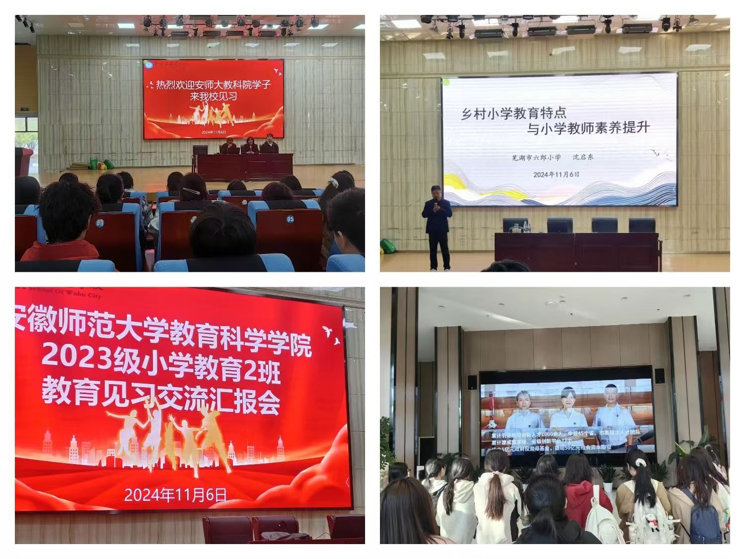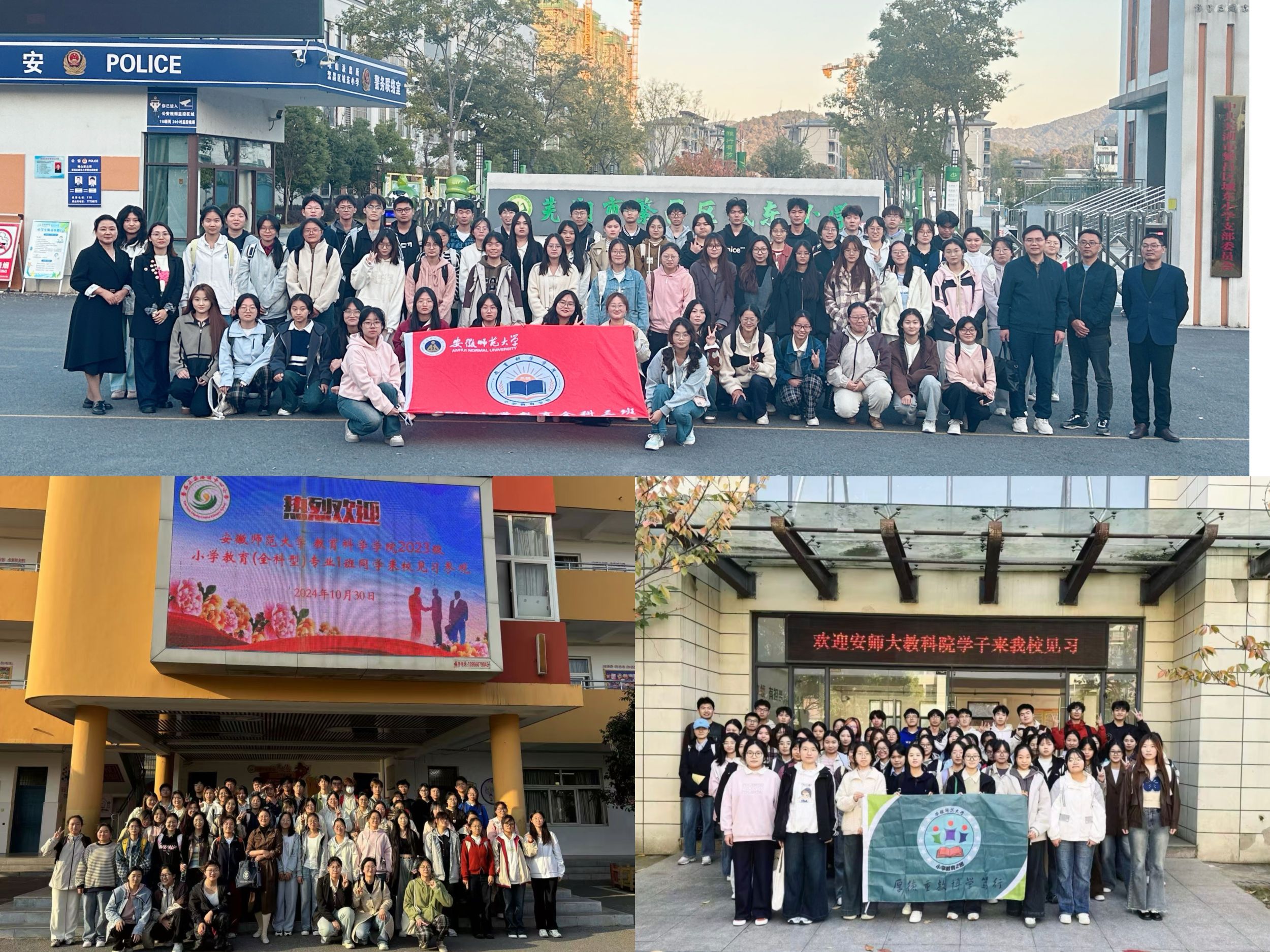 10月30日、11月6日、11月7日,365英国上市官网2023级小学教育(全科型)专业三个班级共190名同学,在专业秘书马兴老师和班主任金马妮老师、位涛老师以及辅导员刘玉瑾老师的带领下分别前往芜湖市繁昌区荻港中心小学、湾沚区安师大附属新芜学校和繁昌区城东小学开展教育见习活动。