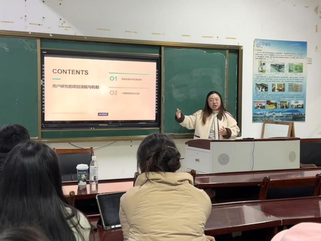 尚媛媛是资深用户洞察与体验专家,曾任职于网易、阿里巴巴等知名企业,目前担任京东、科大讯飞、美的等企业咨询顾问,合作孵化几十项创新产品。活动最后,与参会师生就用户研究工作的性质、未来前景和职前准备做了进一步交流研讨。