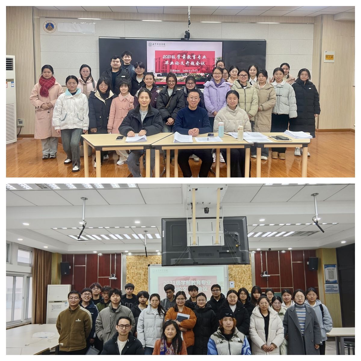 为做好2025届本科毕业论文撰写工作,加强本科生毕业论文撰写各环节的指导和管理, 2025年1月4日,学前教育专业召开2025届本科生毕业论文开题报告会。按照指导教师回避本人指导学生为基本原则,本次报告会分5个小组进行,共117名本科生参与汇报,15位专业教师担任开题指导教师。