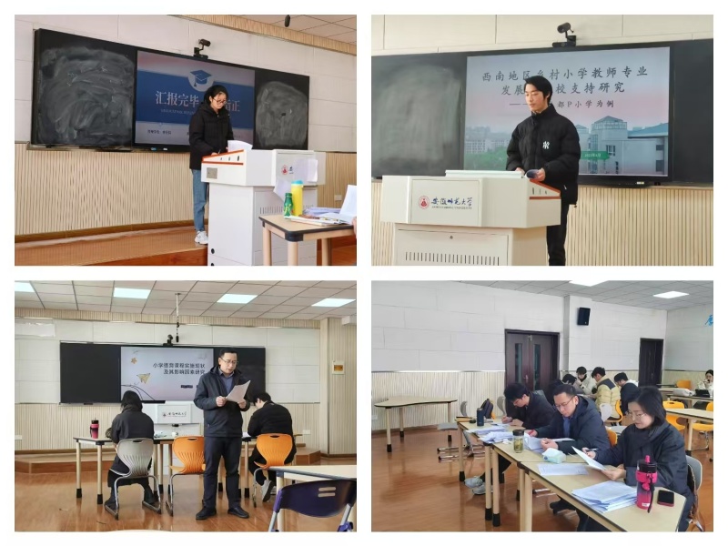 会议伊始,答辩教师组长吴支奎、徐赟、杨俊铨三位老师重申本科生毕业论文开题的意义与价值,介绍答辩流程与重点,并对全体同学提出期望与要求。答辩过程中,各组同学按照分组名单顺序,依次围绕毕业论文的问题提出、研究综述、研究目的、研究内容、研究思路、研究方法、研究意义等进行5分钟左右的个人汇报。随后,答辩教师针对学生的陈述汇报进行提问,并对毕业设计实施过程中可能遇到的问题给出具体的意见和建议。各组老师从理论基础、核心概念、实施难点、论文格式等多方面指出学生存在的不足,并针对每组同学开题报告中存在的共性问题进行了详细点评,强调研究问题要具体、研究内容要聚焦、研究思路要理清。同学们与各位老师展开充分交流,并认真记下需要重新思考、修改或进一步完善的内容。开题答辩会结束后,教育学专业负责人徐赟公布了本次答辩情况并对会议进行总结。他强调,毕业论文是本科阶段的一项重要工作,关乎个人未来的学业发展,希望同学们引起重视,认真做好撰写工作。此外,徐赟老师建议大家结合答辩老师的建议,与指导教师及时沟通交流,寒假期间认真修改打磨,做好后续的跟进工作。