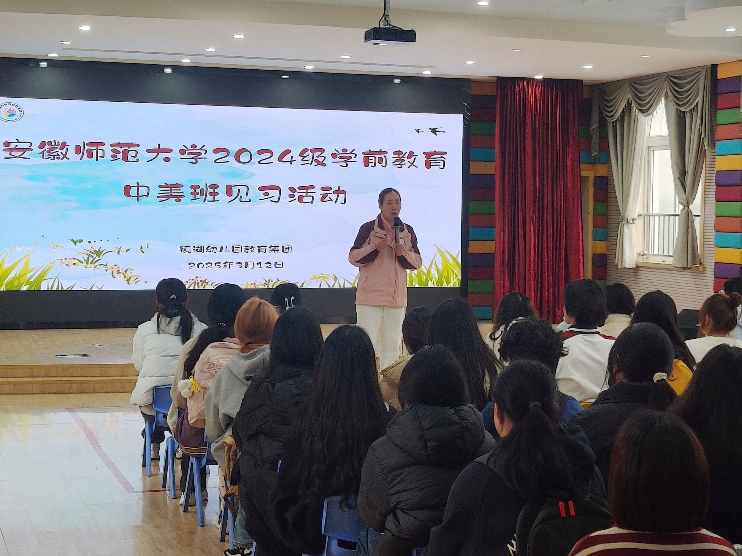 2025年3月12日在王萍老师的带领下,2024级学前教育专业中美班54名全体学生冒雨前往镜湖幼儿园总园和分园镜熙幼儿园,开展首次下园见习活动,正式拉开了本学期为期三个月的下园见习的序幕。