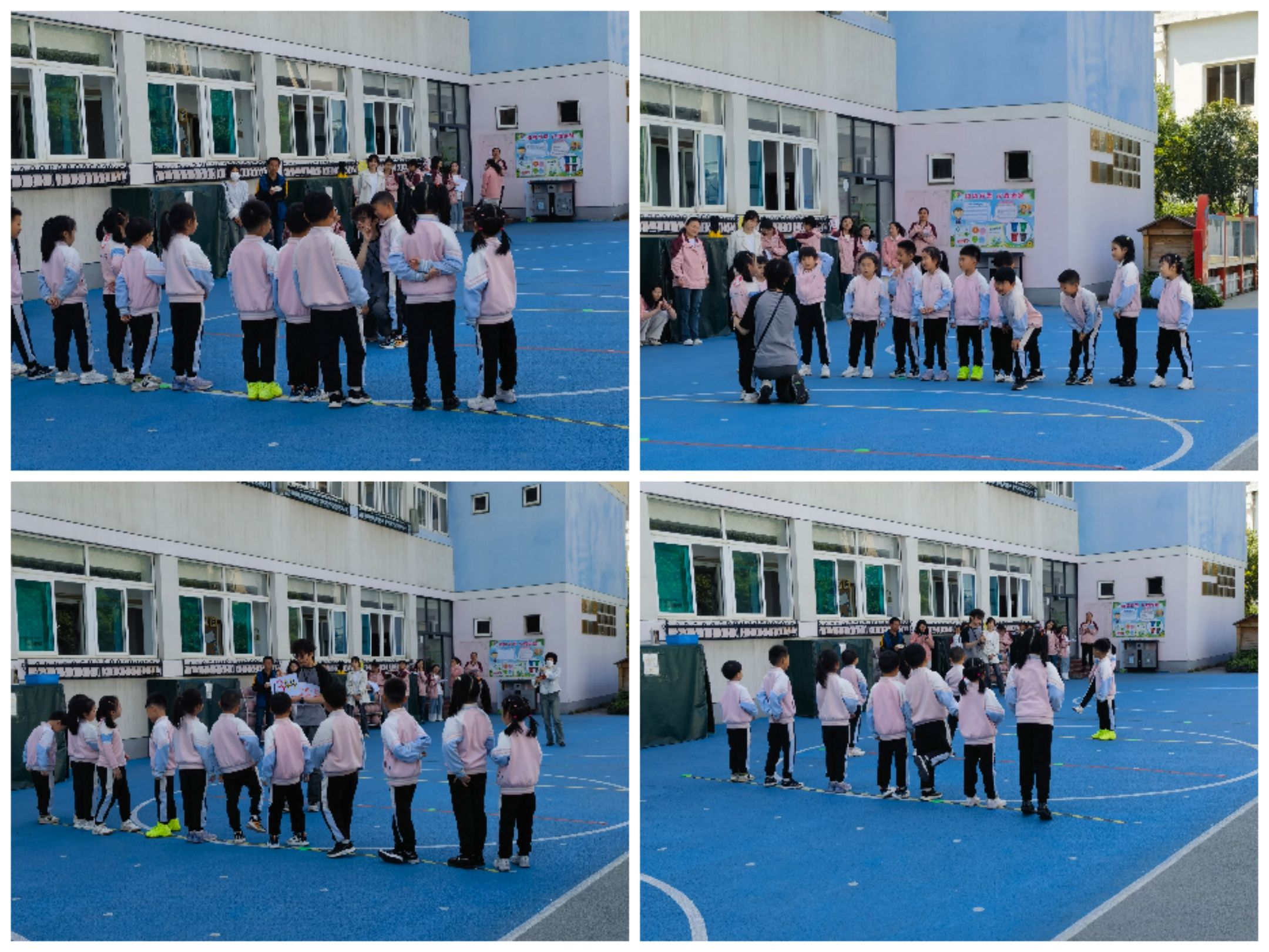 早操结束后,两位老师、杨园长、刘主任、幼儿园老师和全体实习生一起来到操场观摩21级本科生许宏磊同学的公开课。许宏磊同学带领大班小朋友们展开了一次有趣的健康领域活动。本次健康活动通过多个小活动训练幼儿的反应速度,让幼儿充分活动身体的同时融入数学和心理健康,让幼儿获得多方面的发展。