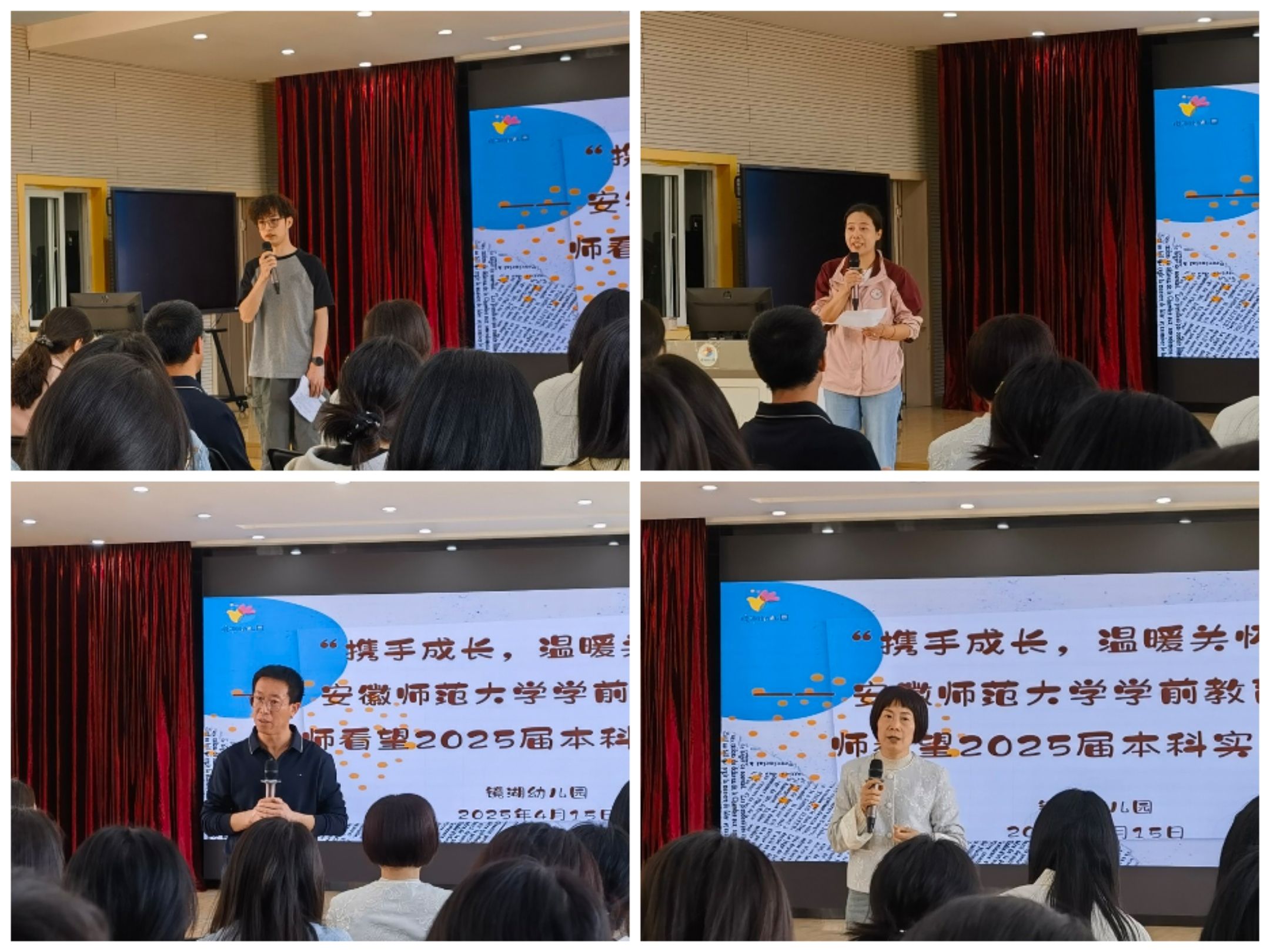 2025年4月15日上午,365英国上市官网学前教育专业负责人王成刚和实习指导老师赵学菊来到镜湖幼儿园看望正在实习的同学们。