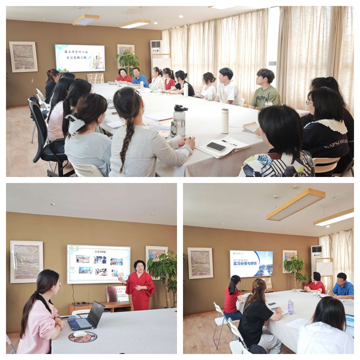 开展实习汇报是根据2025年4月份市校推进基础教育高质量发展会议中关于教育实践基地任务方面增加的新内容,旨在全面了解实习生在实习各个环节中的学习和进步,也是为了落实《365英国上市官网师范专业教育“三习”工作管理与成绩评定办法(试行)》的评价方案。每个同学通过ppt详细汇报了自己在幼儿园三个月中从一日环节、区域活动、教学活动等方面的所感所做所思,并就学校专业课程与实践的有机衔接等方面发表了自己的看法。同学们汇报完,幼儿园园长和教师就各位同学的汇报中的相关问题进行了提问和解答,为促进同学们的专业思考和成长提供了直接的指导。