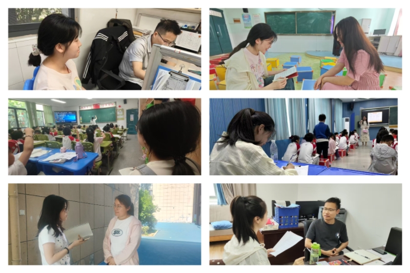 吴颖老师指导的22级学思组、苏明明老师指导的23级启明星小组、徐红老师指导的24级有梦可待小组、徐赟老师指导的24级我有点赟小组,围绕“非教学事务的多维压力”主题,观察教师在处理教研管理、教学指导等非教学事务时的状态,与教师深入交谈,了解他们面临的压力来源、应对方式及对教学工作的影响。
