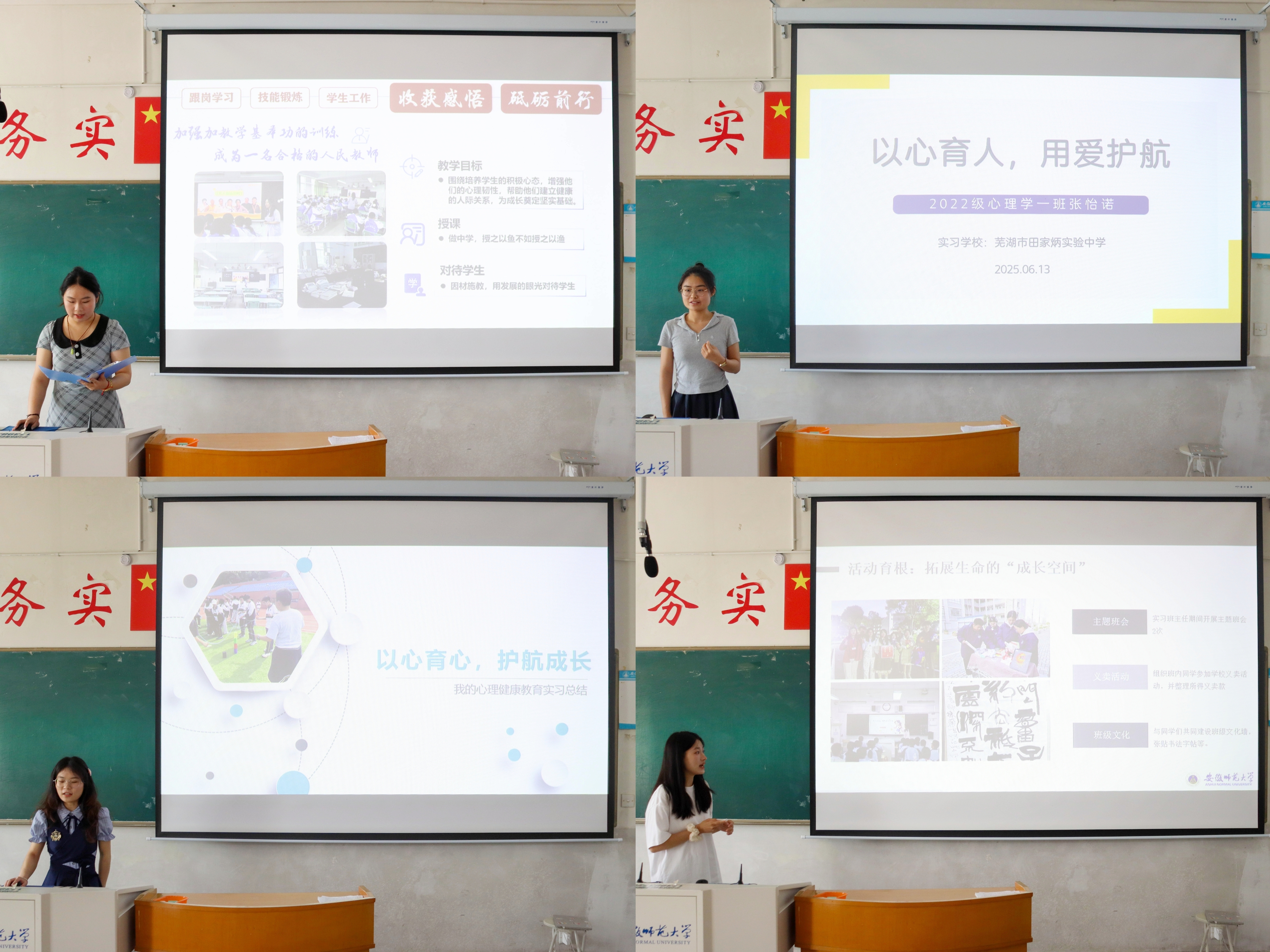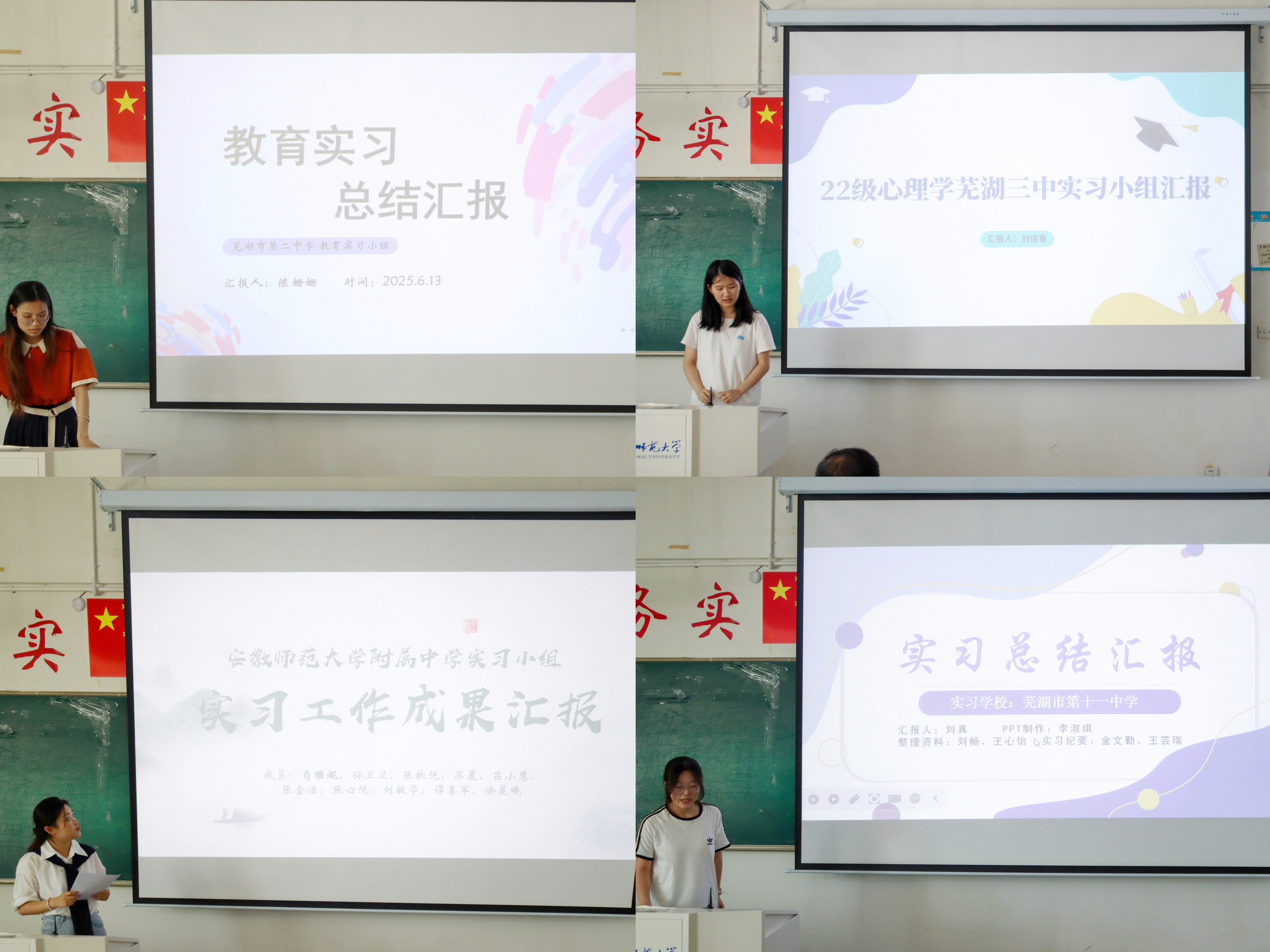 汇报结束后,教师进行点评,首先肯定2022级全体同学的积极表现,期待同学们以此次实习为起点,将实习经验转化为深耕教育领域的动力,未来以扎实的专业能力服务社会。最后,希望同学们能够认真思考本次实习的体验与感悟,提升自己的教学能力,做更好的心理人。