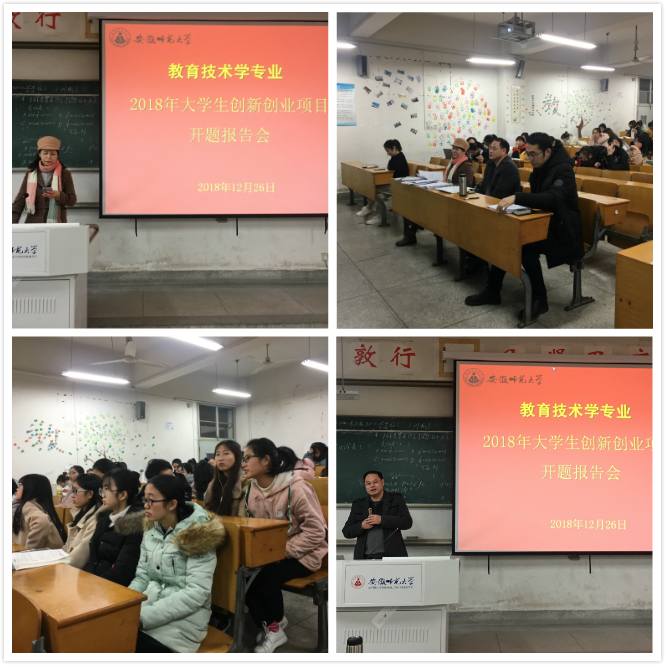 本网讯(教科院 马梦雅 陶佳)为落实大学生创新创业训练计划,提升大学生创新能力,提高人才培养质量,教育技术学专业于12月26日14:00在田楼8102教室举行2018年大学生创新创业训练项目开题报告会。参加此次开题报告会的专家有刘和海老师、陶佳教师、高宇老师。2017级和2018级教育技术学本科生学生到场旁听,开题报告会由陶佳老师主持。