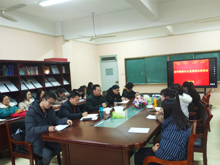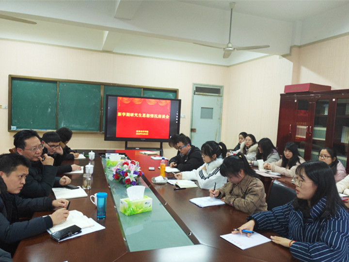 聂院长在主持会议开场白中要求与会老师和同学,要认真梳理汇报学院研究生思想情况,客观真实地反映研究生思想动态和教育管理中存在的问题与不足,以便学院更好地发现问题与解决问题,进一步做好研究生教育培养工作。