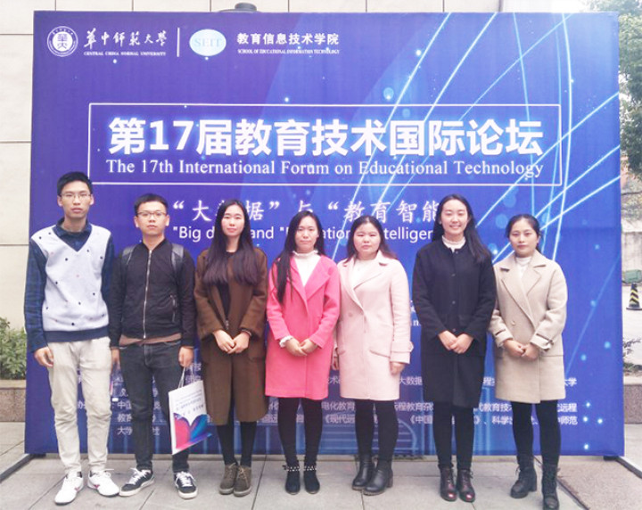 本网讯(教科院 崔福玲)2018年11月17日至18日,由教育部高等学校教育技术专业教学指导分委员会主办的第十七届教育技术国际论坛,在湖北武汉华中师范大学召开,会议的主题为“大数据与教育智能”,我院教育技术学方向张高亮、许文齐、崔福玲等11位研究生参加了此次会议。