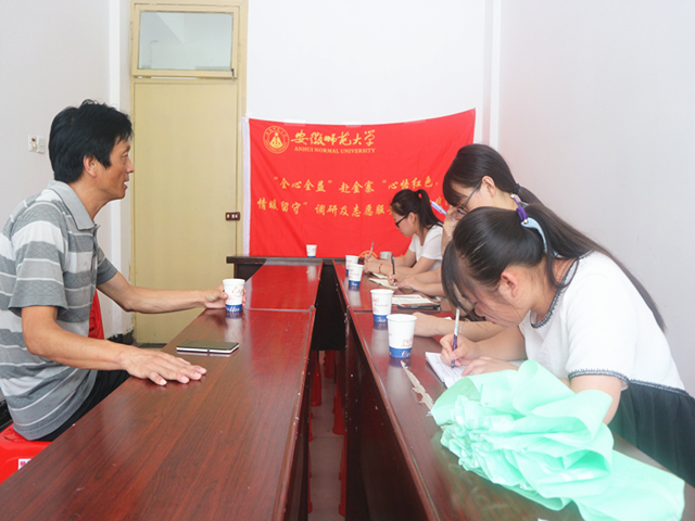 6月30日,在汤家汇镇团委书记何旭的安排下,调研组成员与安徽师范大学校友王求见了面。通过交谈,大家了解到,王求是金寨本地人,本科就读于安徽大学,学习英语专业,2009年考入安师大攻读研究生,主修中国古代史。毕业后从事过一段时间教学工作,后来通过公务员考试回到家乡,在汤家汇政府办公室工作。调研组的成员问道所学专业对其现在的影响时,王求回答道,历史专业属于文科类别,在一定程度上对自己目前从事的办公室工作有促进作用,而所学的英语知识已经遗忘了许多。并坦言当初选择英语专业是考虑到专业的热门程度,读研时则根据自己的兴趣选择了历史。