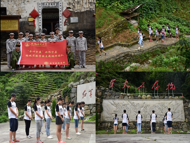 一到达石屋坑村,团队全体成员便迫不及待地走进红军屋,参观抗战时期留下的枪支弹壳等文物,了解革命先烈事迹石屋坑作为爱国主义教育基地,曾是皖南红军独立团的根据地和中共皖浙赣省委的常驻地。这里革命先烈人才辈出,其中方志敏同志领导抗日先遣队曾在这里播下革命火种,他将马克思主义普遍真理与根据地实际相结合,创造一整套建党、建军和建立红色政权的经验,毛泽东同志称之为“方志敏式”根据地。紧接着团队成员换上仿制的红军服装,在红军屋前合影留念。随后,全体成员沿着崎岖不平的山路,前往烈士纪念广场。在烈士纪念广场上,全体成员低头悼念,向经历艰苦卓绝斗争的革命先烈们致以最崇高的敬意。仪式后,团队成员自由参观。“三年游击战争,石坑贡献最大。只为革命需要,甘愿洒血抛首......胜利来之不易,先烈永垂不朽!”在陈列的文物中,团队成员发现刘毓标将军所作的《忆石屋坑往事》一文,不自觉地朗读出来,铿锵有力、响彻山谷。