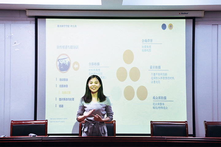图/胡旭珽)为进一步做好学院宣传报道工作,提升研究生会成员的宣传意识和实践能力,打造一支强有力的通讯队伍,5月8日晚八点在学院三楼学术交流中心,叶方舟老师对我院全体研究生会成员进行了宣传稿撰写及新闻图片拍摄的培训。