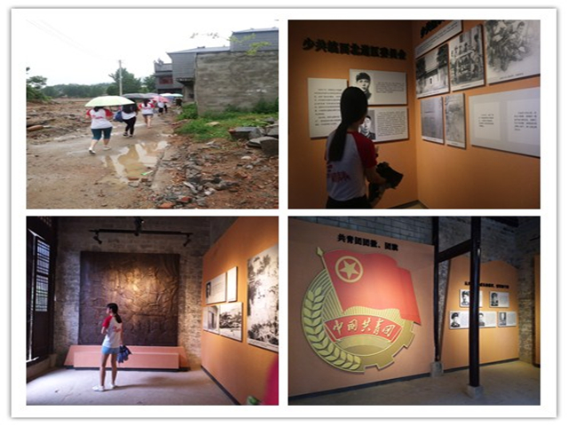 当日下午,调研团队先后参观了易氏宗祠、姚氏祠、街善寺、赤城县邮政局、徐氏祠等爱国红色文化景点。尽管在参观过程中当地下起了大雨,但调研组的成员们依旧热情不减。这些景点里面不仅有大量珍贵的历史资料,还陈列了很多红军战士昔日的物品。更有一些建筑通过场景重现的方式让大家更加直观、清楚地让同学们感受到战士保家卫国的勇敢忠诚、医护人员救死扶伤的无私奉献以及军民的鱼水情深的和紧密联系。例如,展馆里还原了医护人员在恶劣的环境中给受伤的战士进行手术的现场、战士们手拿尖刀、枪炮,誓死不对敌人妥协的雕像、邮递人员手拿信件传递信息的雕像等。讲解员生动形象的解说,也让调研团队的同学们对红军战士的精神有了更加深刻的认识,对自己身为一名共青团员应该肩负起的责任与使命有了更清晰的认知。展板上,无数爱国战士为了国家安定和人民幸福,献出了自己年轻而宝贵的生命。在经过徐向前将军生前短住过的房间时,同学们更是深刻体会到战士们艰苦朴素的生活作风。屋子里只有简单的桌椅和床铺,尽管条件艰苦,但革命战士依旧能用积极乐观的心态去为祖国和人民去浴血奋战的精神深深地感染了同学们。