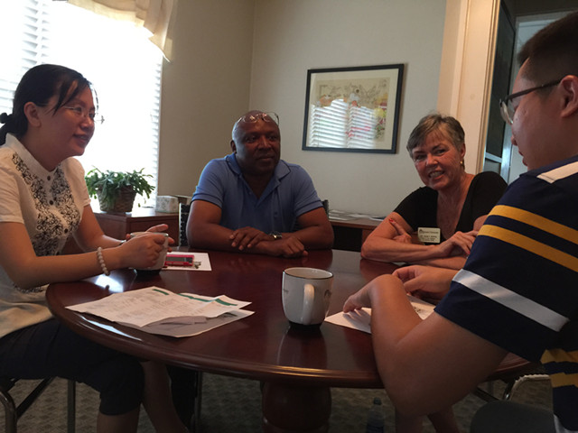 张书记对于美方给予的高度重视与支持,尤其是Dr. Rudi KieferDr. Bryan Sorohan的专程接送与陪同表示了由衷的感谢,作为首批赴美学习的学生,张书记在学生学习计划和生活方面提出了自己的建议和想法,她希望美方老师尽可能考虑学生的实际英语水平,并在最短的时间里帮助他们提升专业素养,同时她也希望布莱诺大学在学生的饮食方面给予照顾。龚伟老师则希望未来两年的学习中,学生们可以获得更多锻炼的机会,尤其是可以增加技能课程学习和参加学术讲座的机会。40分钟的交流轻松愉悦,双方也对于即将开始的正式学习表达了期待之情。