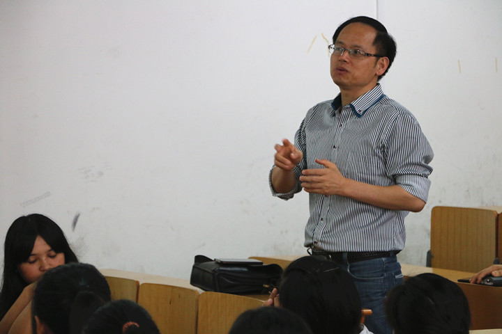 会议伊始,张更立老师以诙谐幽默的语言向同学们做了简明的自我介绍, 同时介绍了出席会议的领导老师。接着张老师从筹建情况、师资情况、教学资源与培养方案等四个方面介绍了安徽师范大学学前教育这个年轻而富有实力的专业。之后,张老师以简明扼要的语言阐述了安师大学前教育专业雄厚的师资力量、系统的说明了专业人才的培养依据与学前教育专业的课程设置,极大的增强了同学们对本专业学习的信心。而在人才培养方面,张老师提出了保育教育并重的培养方针,同时向同学们推荐了《学前教师教育课程标准》、《幼儿园教师专业标准》等必读书籍与文件,为学前教育专业的学生接下来的学习与发展提供了方向。