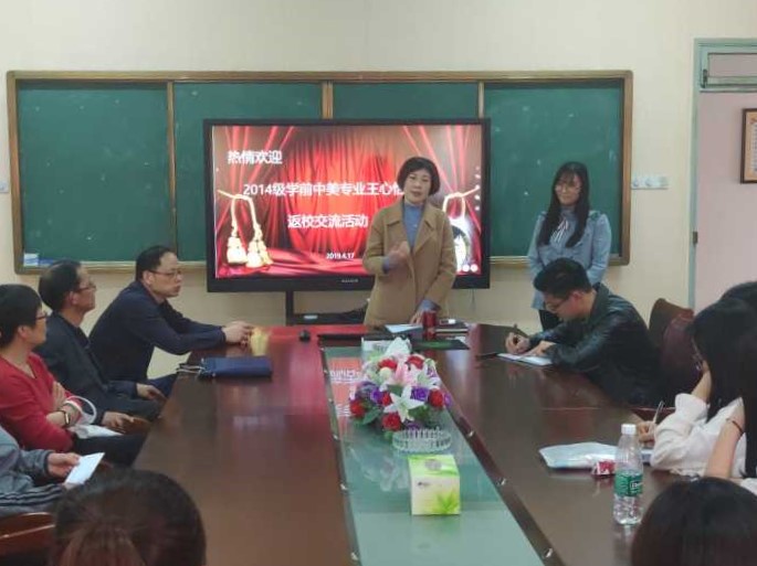 本网讯(教科院 程啸 何倩兮)近日,我院学前教育(中美合作)专业在学院408会议室邀请了2014级学前中美专业的王心怡给在校同学分享了她在美国的学习、生活以及继续发展的经历。学院院长桑青松以及学前教育专业部分教师参会,学前教育(中美合作)专业负责人赵学菊主持会议,17级和18级学前教育(中外合作)专业的全体同学参与。