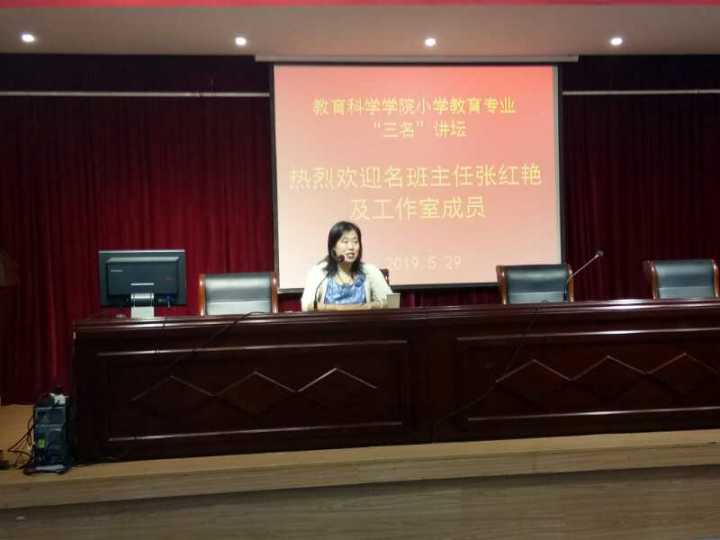 本网讯 (教科院 王利群) 529日, 安徽省特级教师、教学名师,狮子山小学张红艳老师做客“三名”讲坛,给我院小学教育专业全体同学开展了一场精彩的讲座。讲座由专业负责人王芳老师主持,小学教育专业全体同学参加了此次讲座。