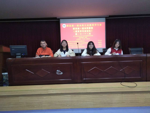 本网讯(文/魏珍 图/张思雪)4月11日晚,国家级一流专业建设点教育学专业成功举办第一百一十八次专业论坛。此次论坛由19级教育学刘星辰担任主持人,18、19、20级全体教育学专业本科生到场参加。莅临本次论坛的嘉宾老师是辛治洋老师、滕曼曼老师和石亚兵老师。