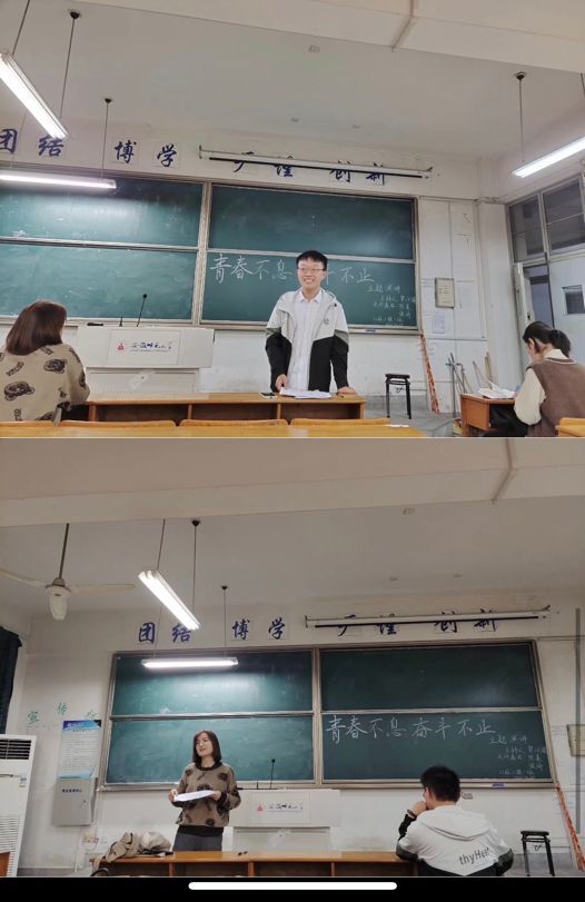 主题演讲活动主要采取班级分组的形式,每班分五组,每组平均十人左右,每周一组轮流进行。21级小教1班各组主要围绕 “青春不息,奋斗不止”、“分享一本书”、“当代大学生如何自我保护”“谈当代社会风气”“人际关系需要断舍离吗”等主题开展。点评老师由王芳、魏晓敏、姚运标、夏益军、白倩、杨俊铨、陈晨、李卯、查小虎、吴颖十位老师组成,他们从演讲内容、语言艺术、仪表姿态、情感渲染等方面对演讲者进行了一一点评,指出学生存在的不足 ,并鼓励学生多锻炼、多尝试、多自信,不断突破自我设限。张琦、高驰、张钰彬、崔中原等学长学姐也依次分享了自己的宝贵经验,给予细心指导。通过两轮的主题演讲活动,同学们的各项能力得到显著提升。也彰显了21级小教1班全体同学的精神风貌和勇气。