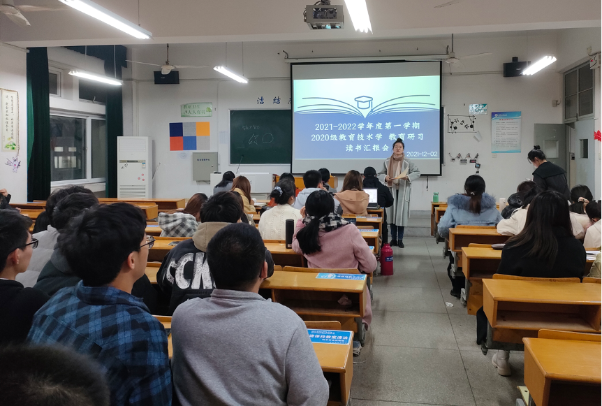 本网讯(教科院 张帅/常珍妮)12月2日18:45,20级教育技术学专业1班在田楼8504举行的2021-2022学年度第一学期教育研习读书汇报会。教育技术学专业老师张克松老师、王清老师、陶佳老师、张帅老师、白茜老师出席了本次汇报会,并对同学们的汇报进行了指导。本次读书汇报会由副班长王圣淇主持。