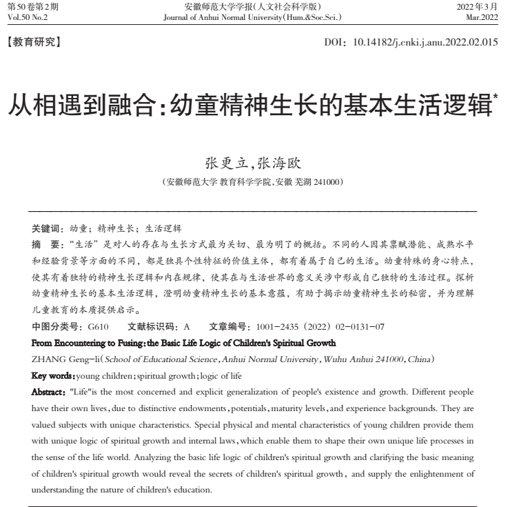 从相遇到融合:幼童精神生长的基本生活逻辑