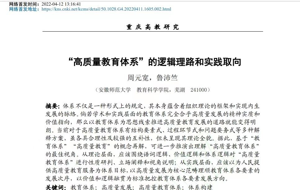 “高质量教育体系”的逻辑理路和实践取向