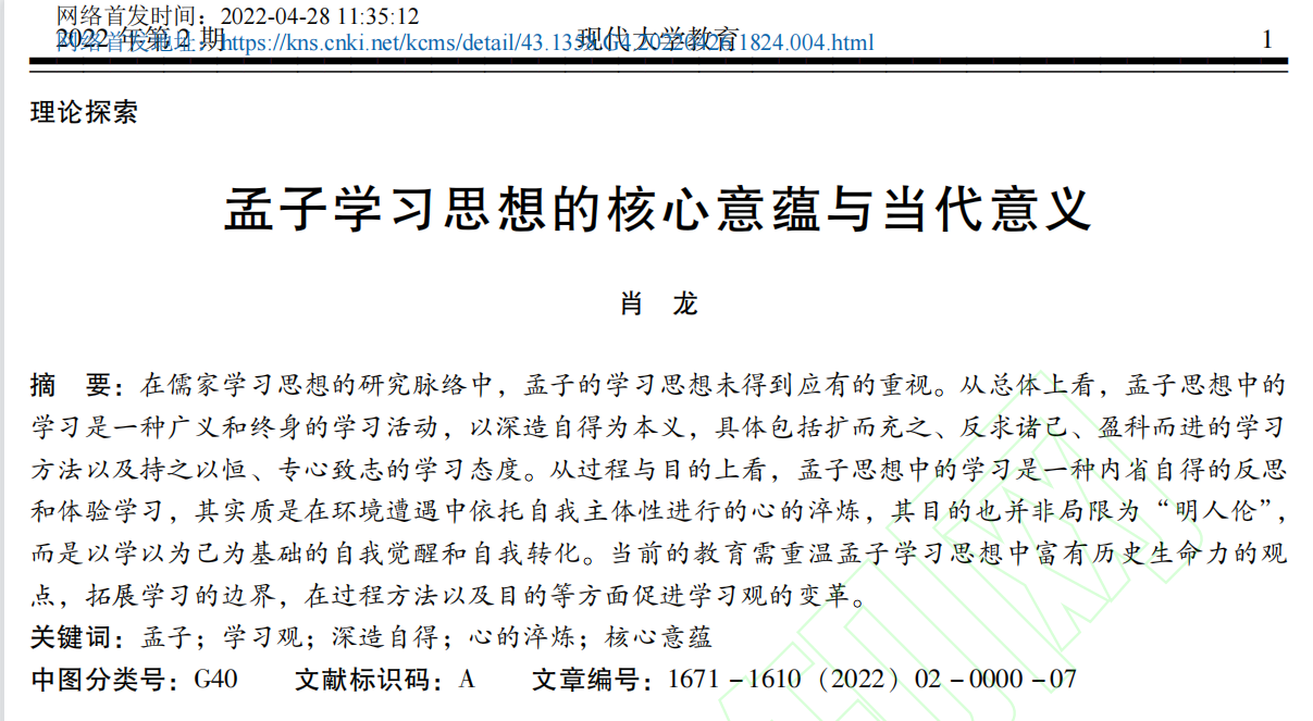 孟子学习思想的核心意蕴与当代意义