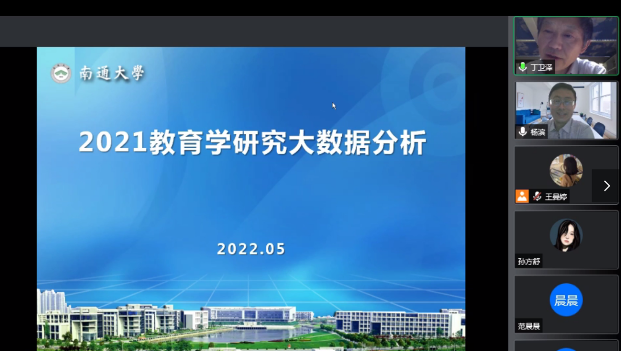 本网讯(图/文 钟璐)5月22日下午,南通大学丁卫泽教授应365英国上市官网邀请与我院师生开展线上学术交流,并作了题为“2021教育学研究大数据分析”的专题讲座。讲座通过腾讯会议举行,由杨滨教授主持,全体教育技术学、现代教育技术专业硕士研究生线上参会。