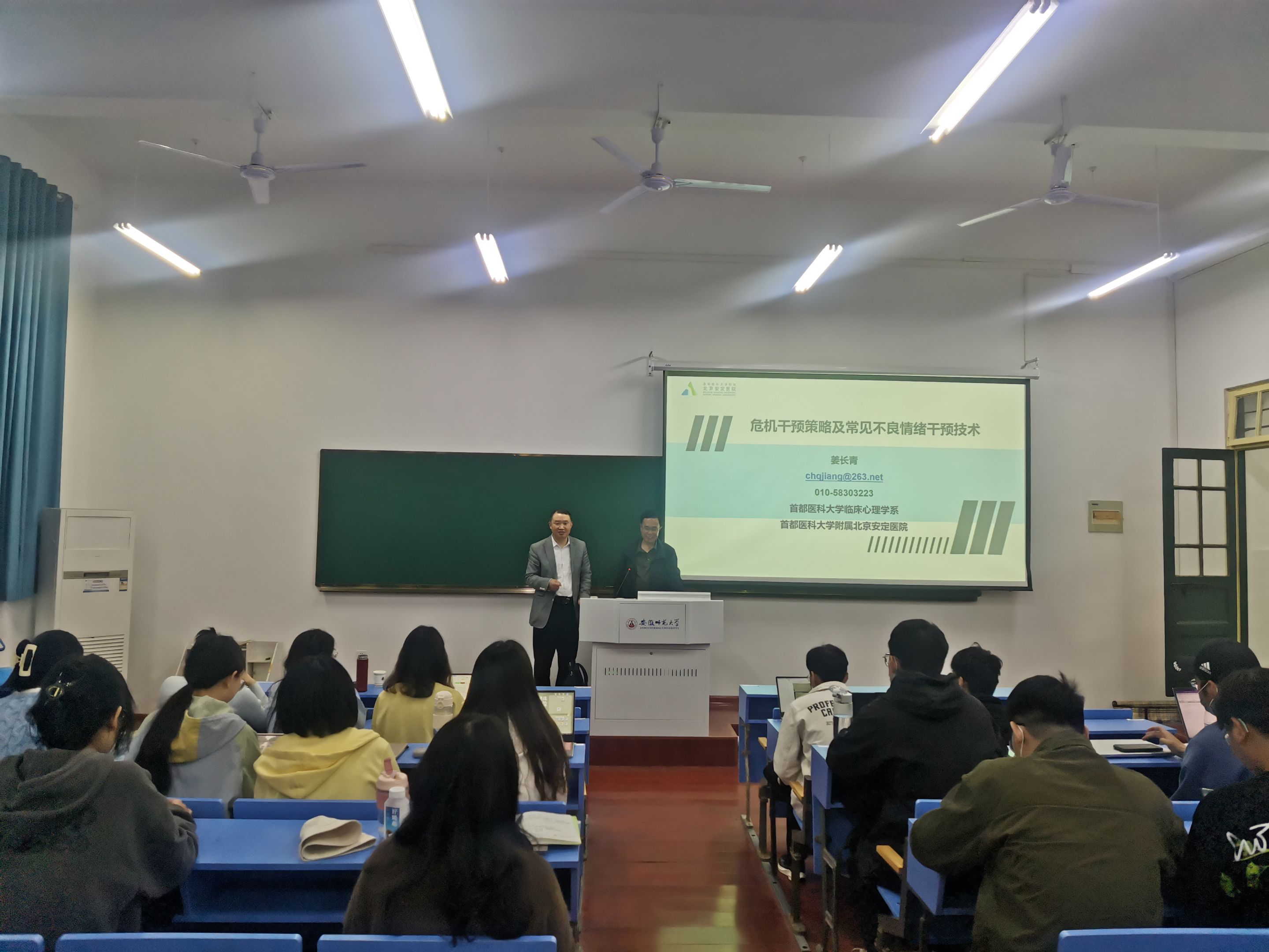 讲座伊始,姜长青主任首先向我们介绍了什么是危机干预,强调危机干预最重要的是对干预人群的评估,并以此为切入点正式引入对危机干预策略的介绍。姜主任主要从“认知、情感与行为的评估”、“危机干预的一般策略和原则”和“常见不良情绪的干预策略”三方面展开本次讲座,向我院师生简要介绍了针对不同的群体如何开展危机干预。