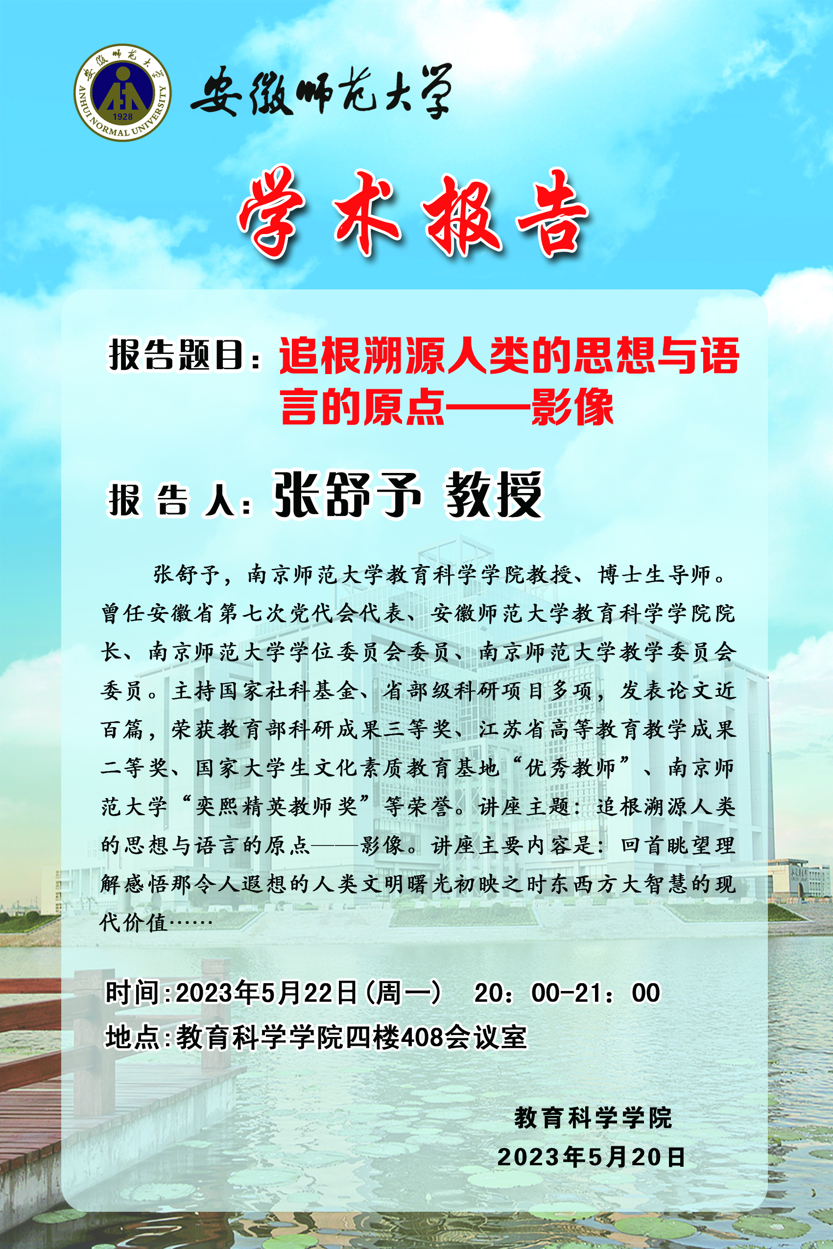 【学术预告】张舒予:追根溯源人类的思想与语言的原点—影像